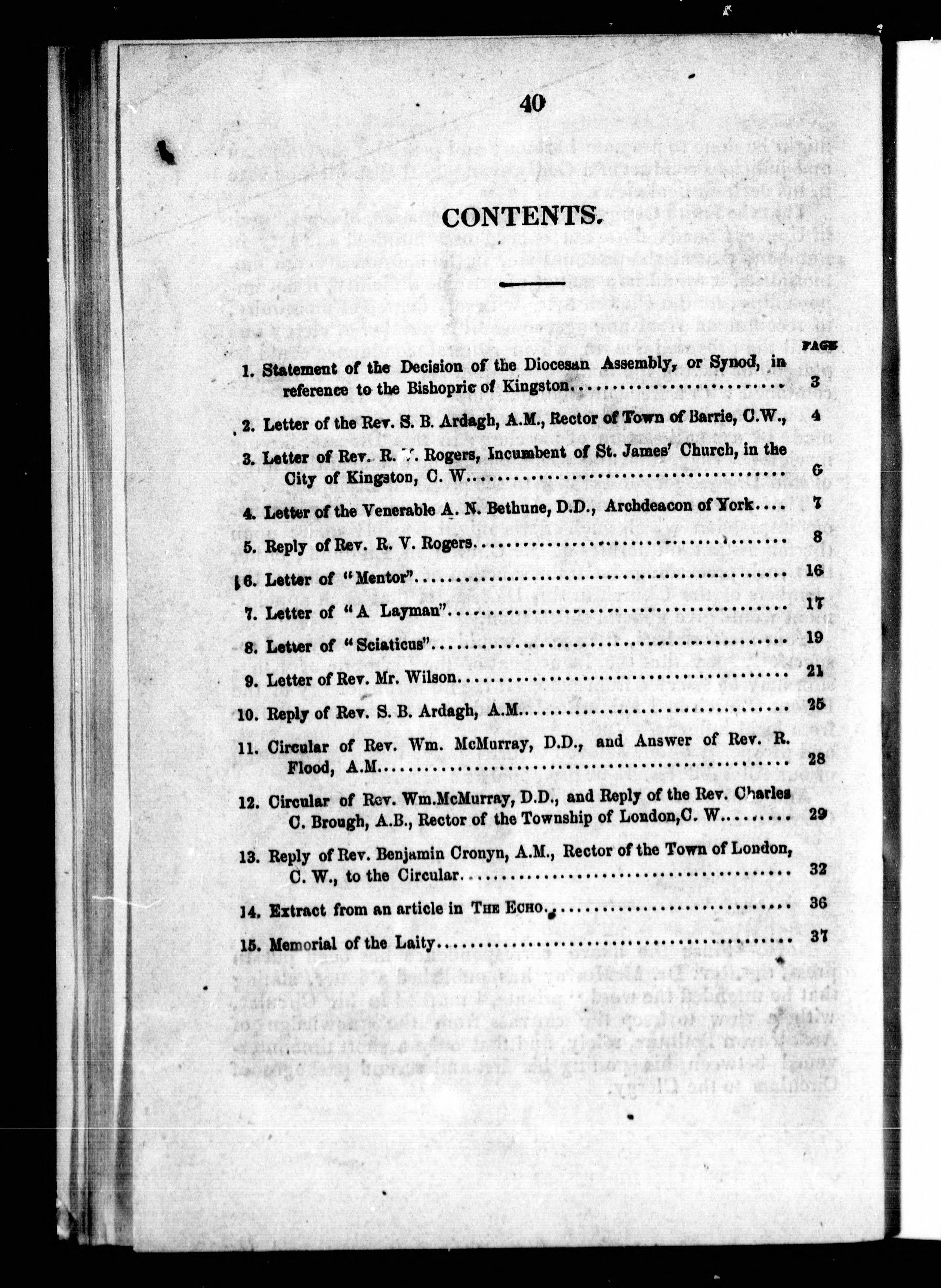 Published correspondence and papers called forth by a canvass among a section of the clergy of the diocese of Toronto : having in view the recommendation of the venerable the Archdeacon of York, in said diocese, as the incumbent of the proposed new Bishopric of Kingston, Canada West.
