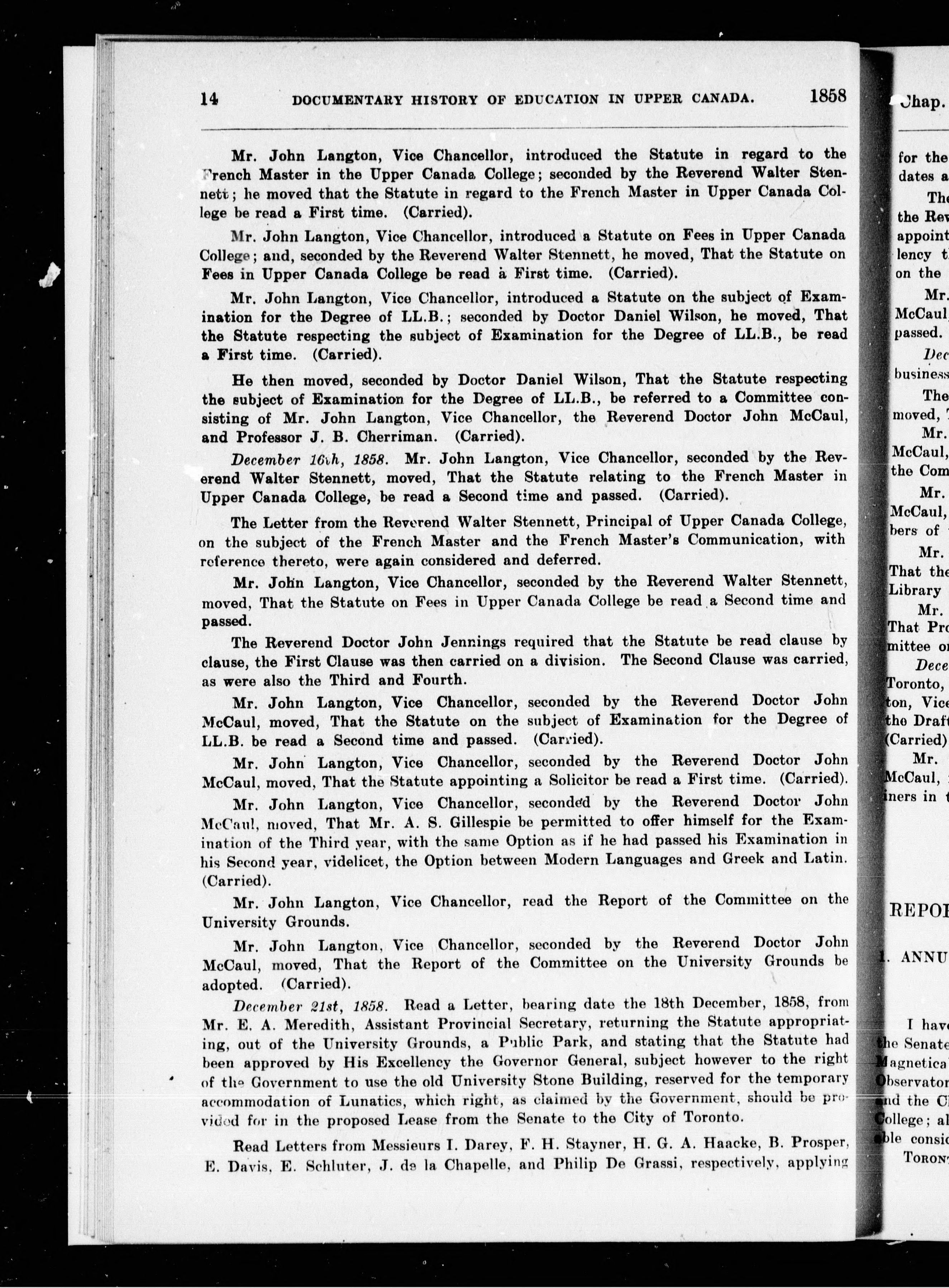 Documentary history of education in Upper Canada, from the passing of the Constitutional Act of 1791 to the close of the Reverend Doctor Ryerson's administration of the education department in 1876 : forming an appendix to the annual report of the minister of education