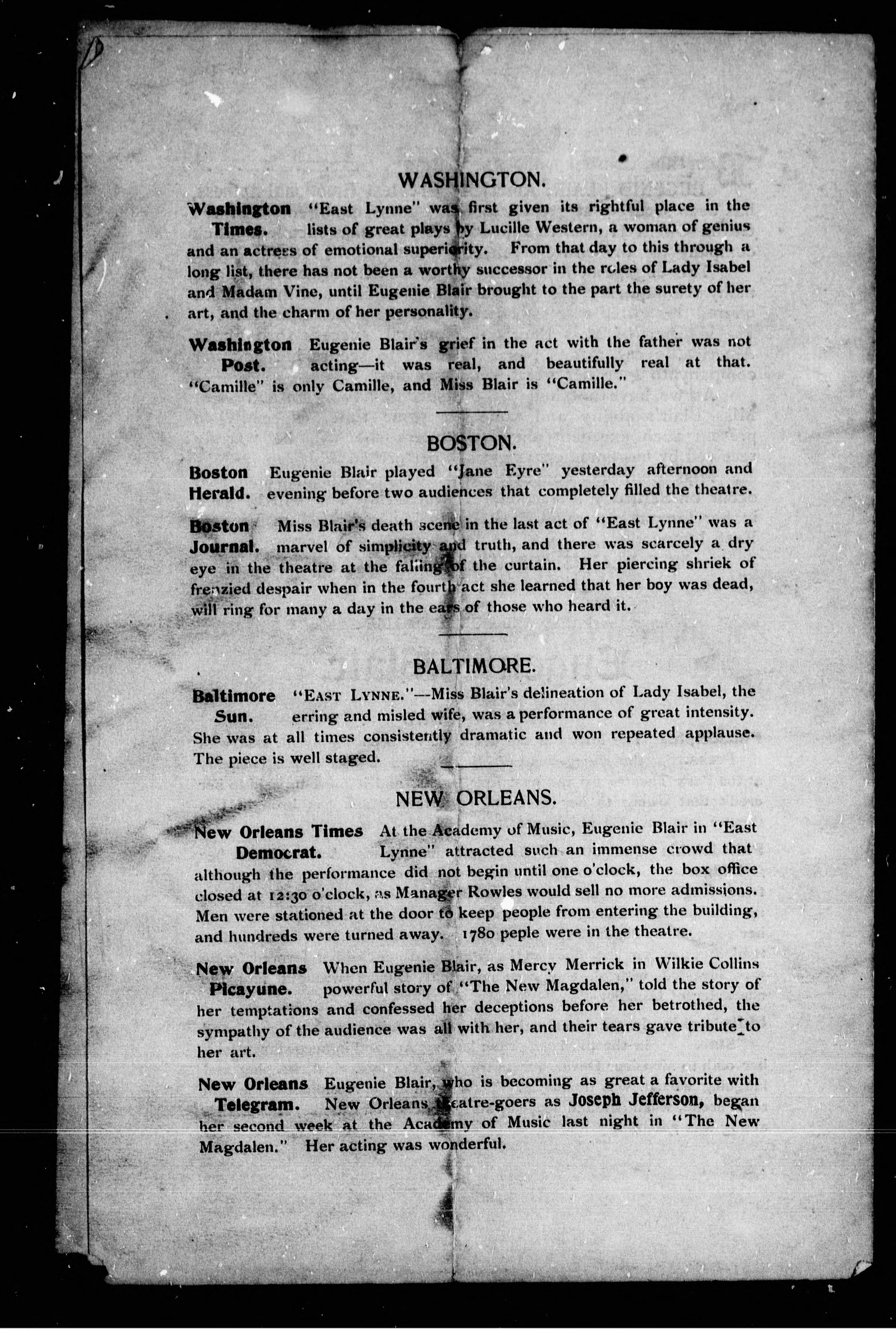 - Eugenie Blair and her own stock company : direction Robert Downing.