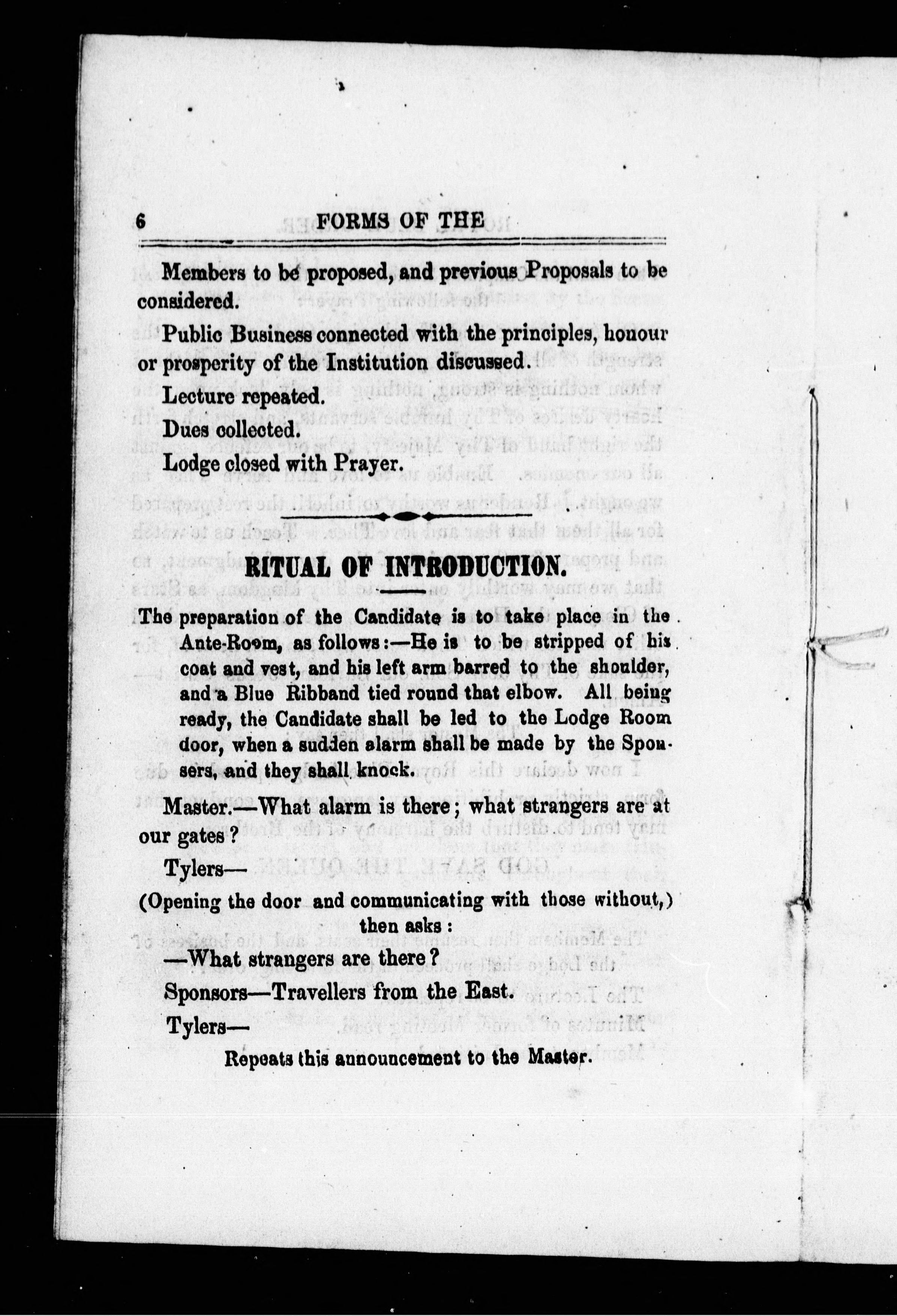 Forms to be observed in private lodges of the Loyal Orange Institution of British America : Royal Blue. - Adresse bibliographique
