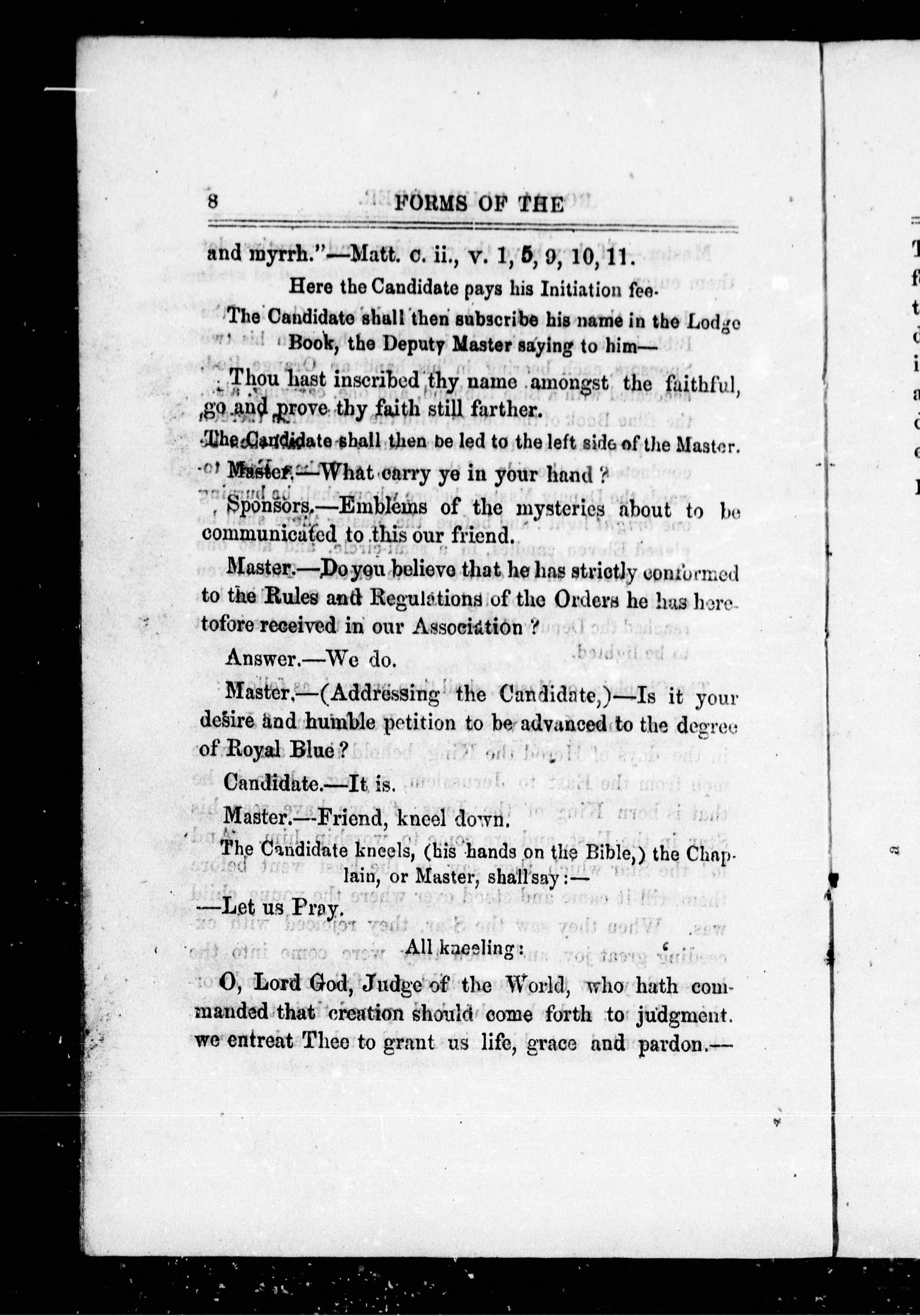 Forms to be observed in private lodges of the Loyal Orange Institution of British America : Royal Blue. - Adresse bibliographique