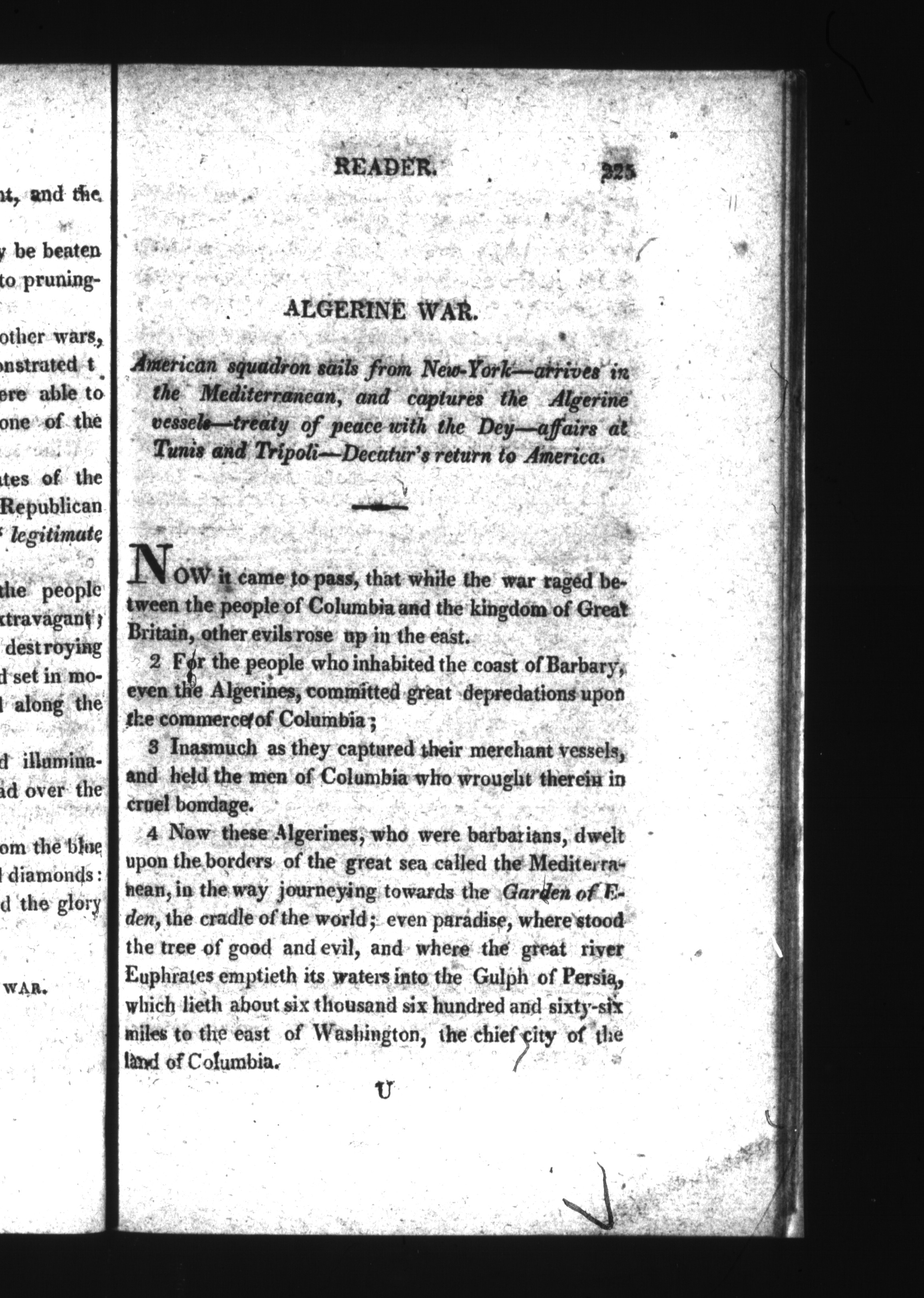 The historical reader : containing the late war between the United States and Great Britain, from June, 1812, to February, 1815 : written in the ancient historical style, altered and adapted for the use of schools throughout the United States