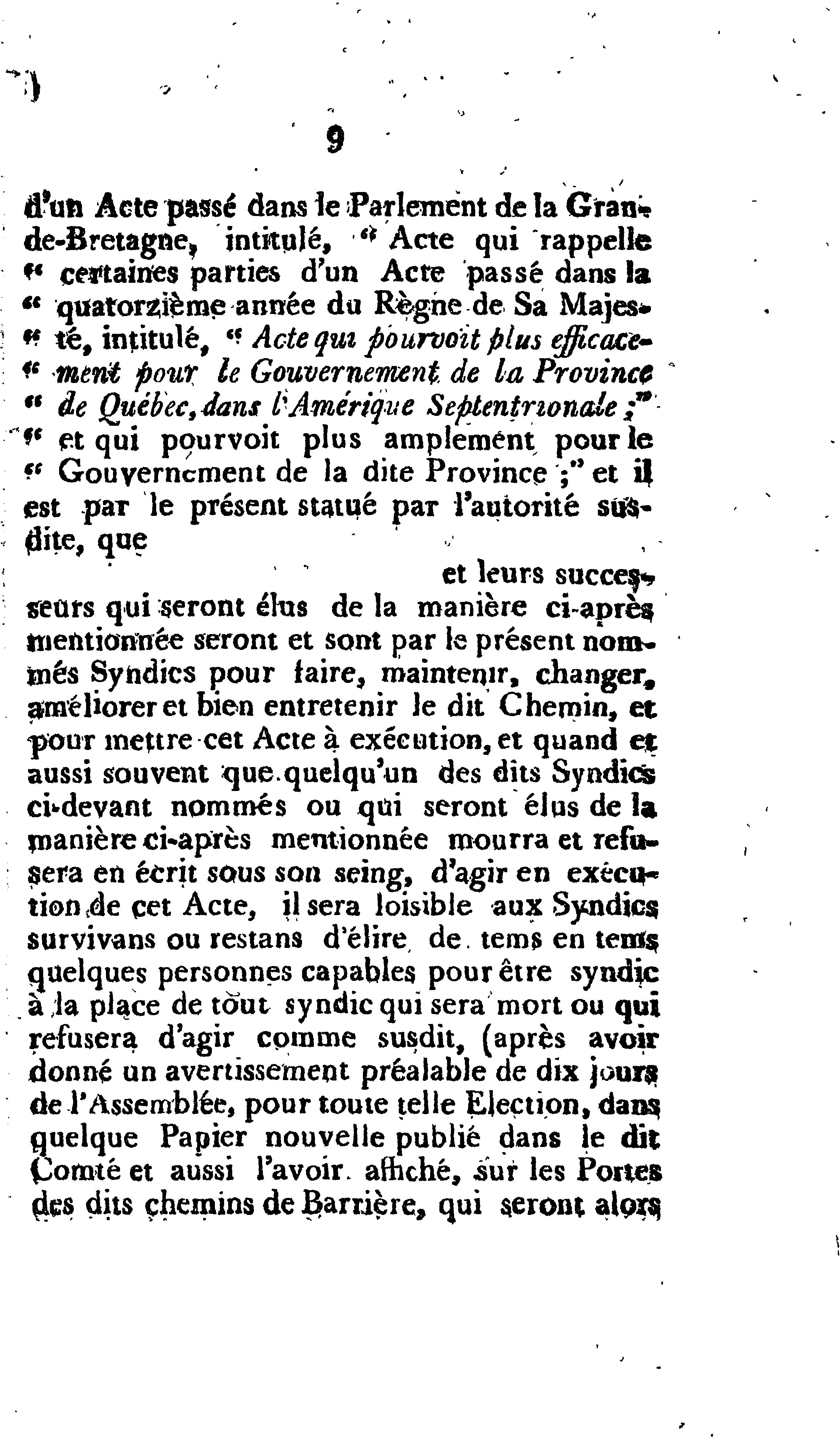 Bill introduit dans la Chambre d'assemblée du Bas-Canada pour incorporer certaines personnes y mentionnées aux fins de faire et entretenir des chemins de barrière dans et près la banlieue de Québec