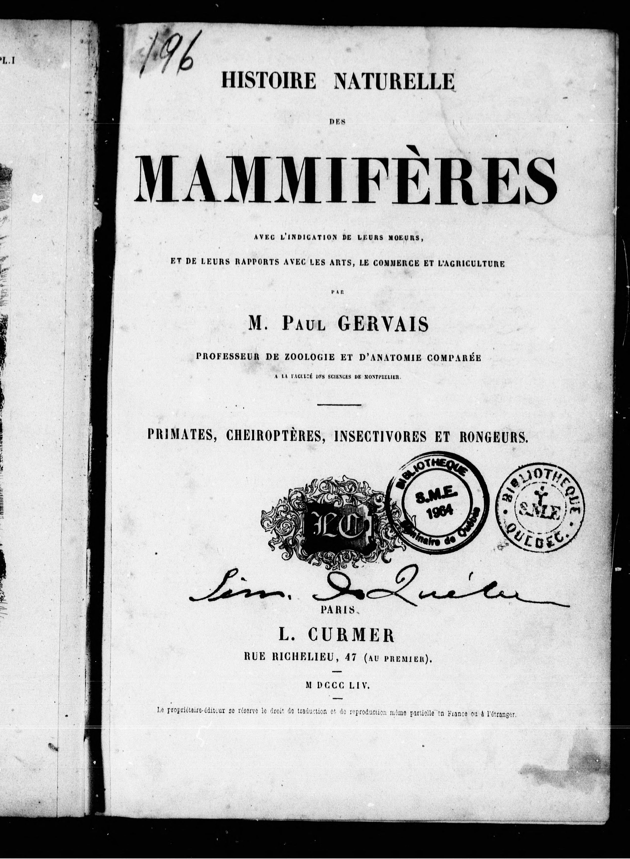 Histoire naturelle des mammifères : avec l'indication de leurs moeurs et de leurs rapports avec les arts, le commerce et l'agriculture