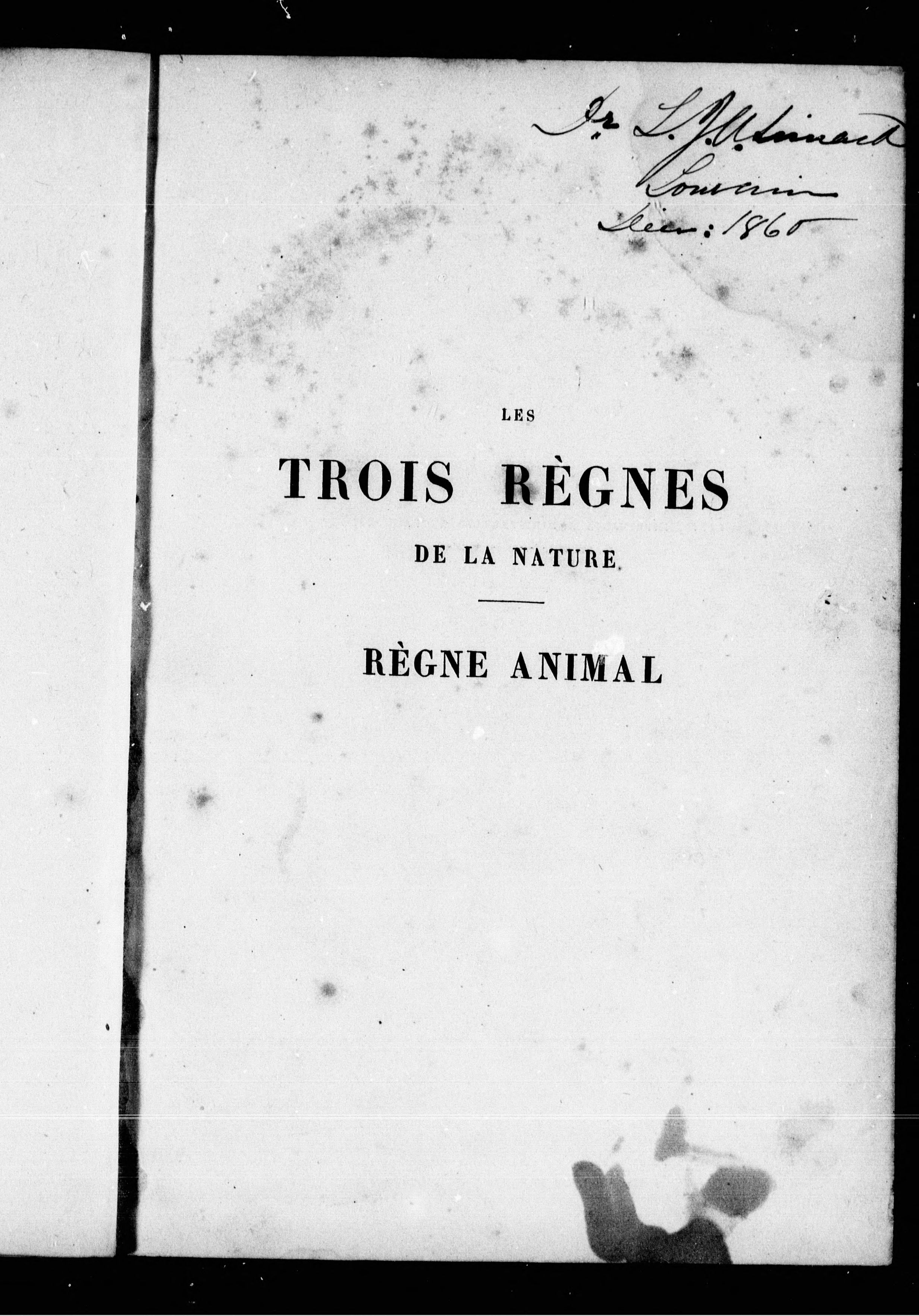 Faux-titre: Les trois règnes de la nature-Règne animal.