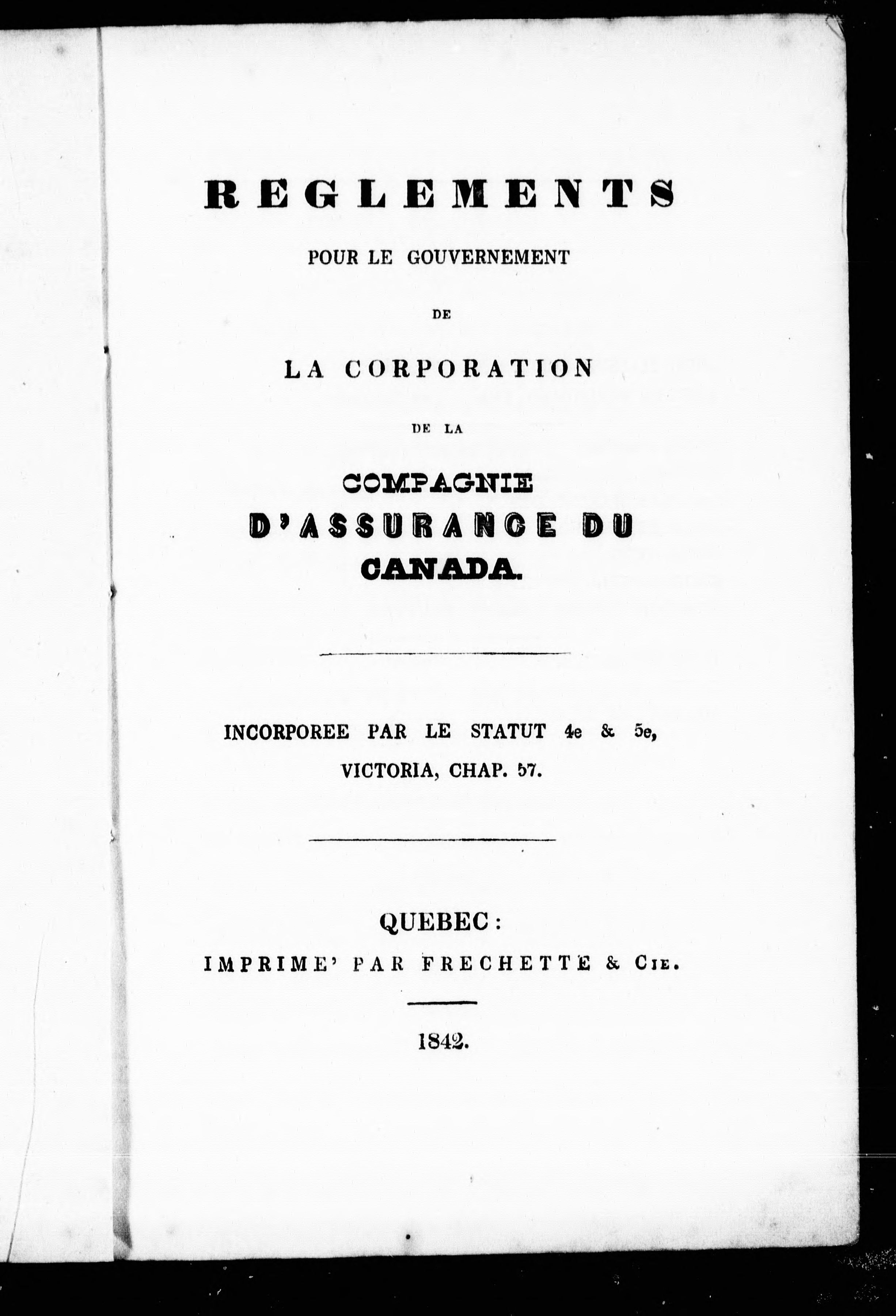 Règlements pour le gouvernement de la corporation de la Compagnie d'assurance du Canada.