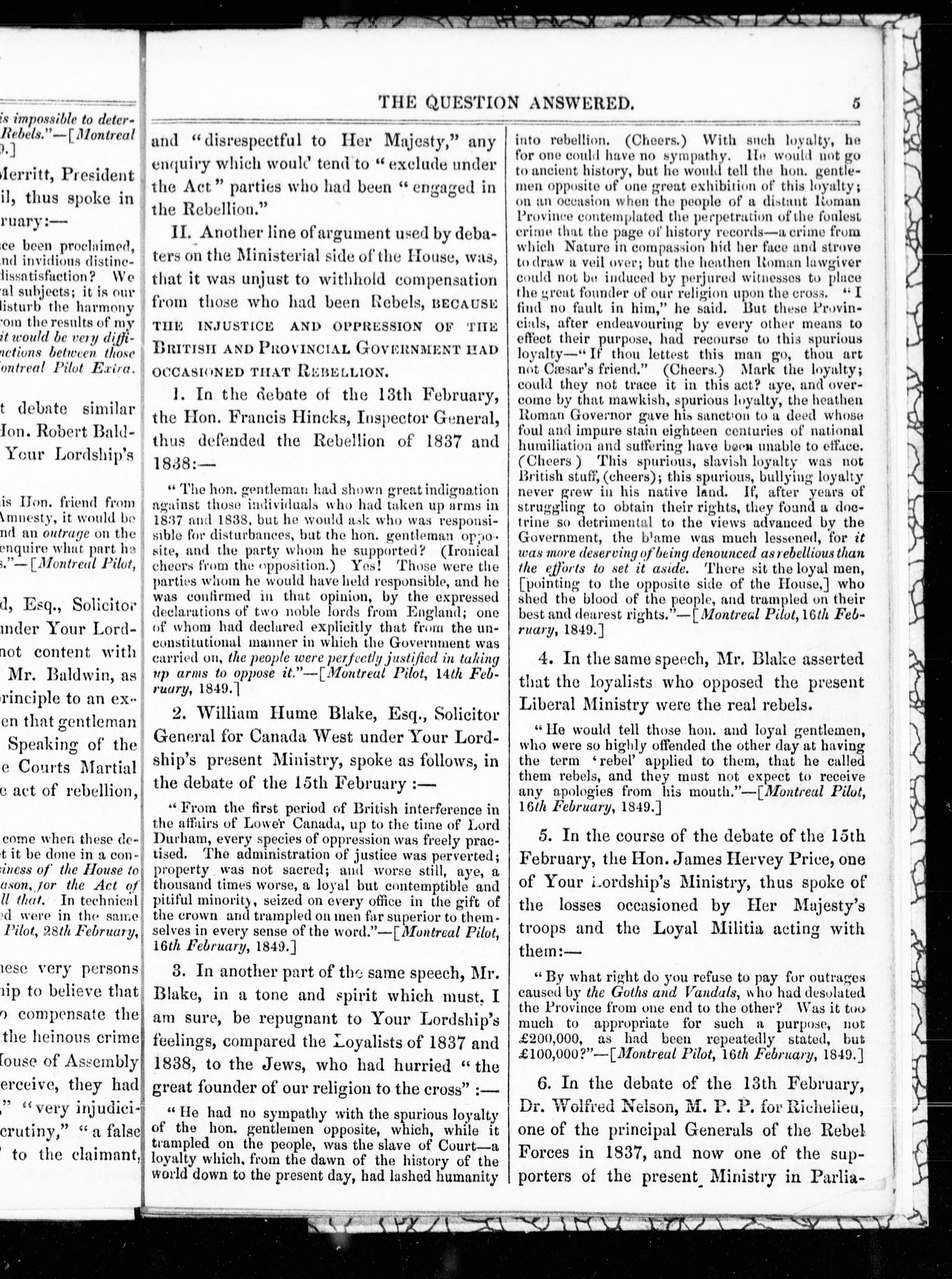 Canada -- History -- Rebellion, 1837-1838 -- Claims.