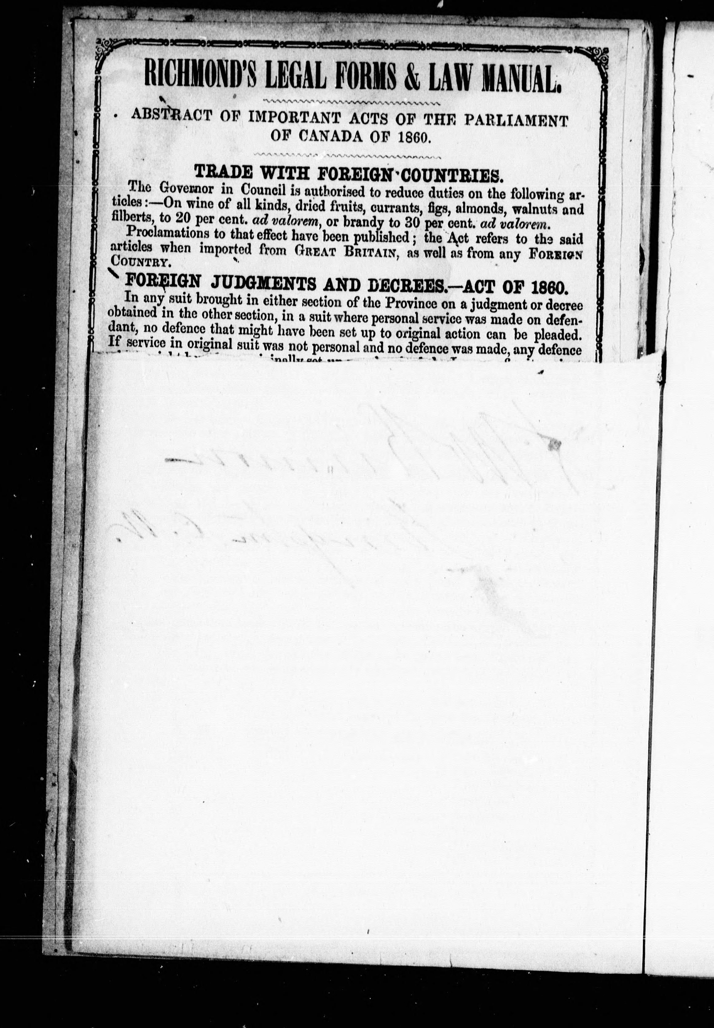 Richmond's book of legal forms and law manual for the legal transaction of business : adapted to the use of county and town officers, merchants, clerks, mechanics, farmers, professional men, justices of the peace, coroners, sheriffs, bailiffs, and to the use of all persons in every station of life ... with upwards of forty of the latest Parliamentary acts ...