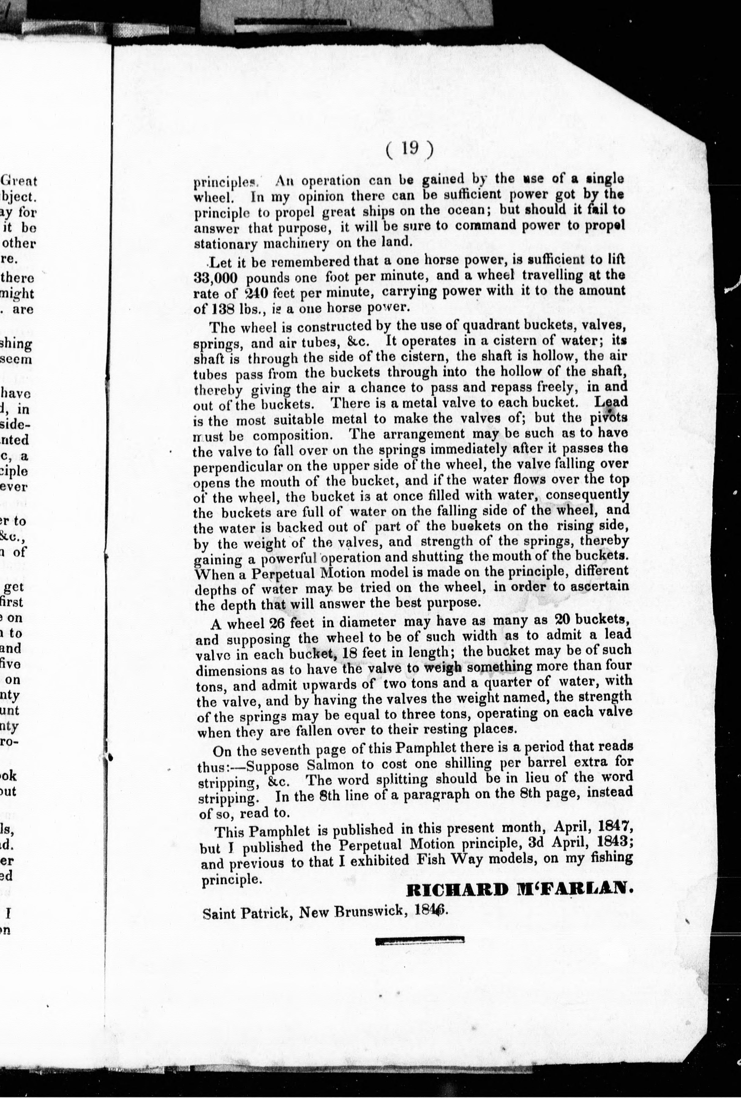 [Fredericton, N.B.? : publisher not identified], 1847.