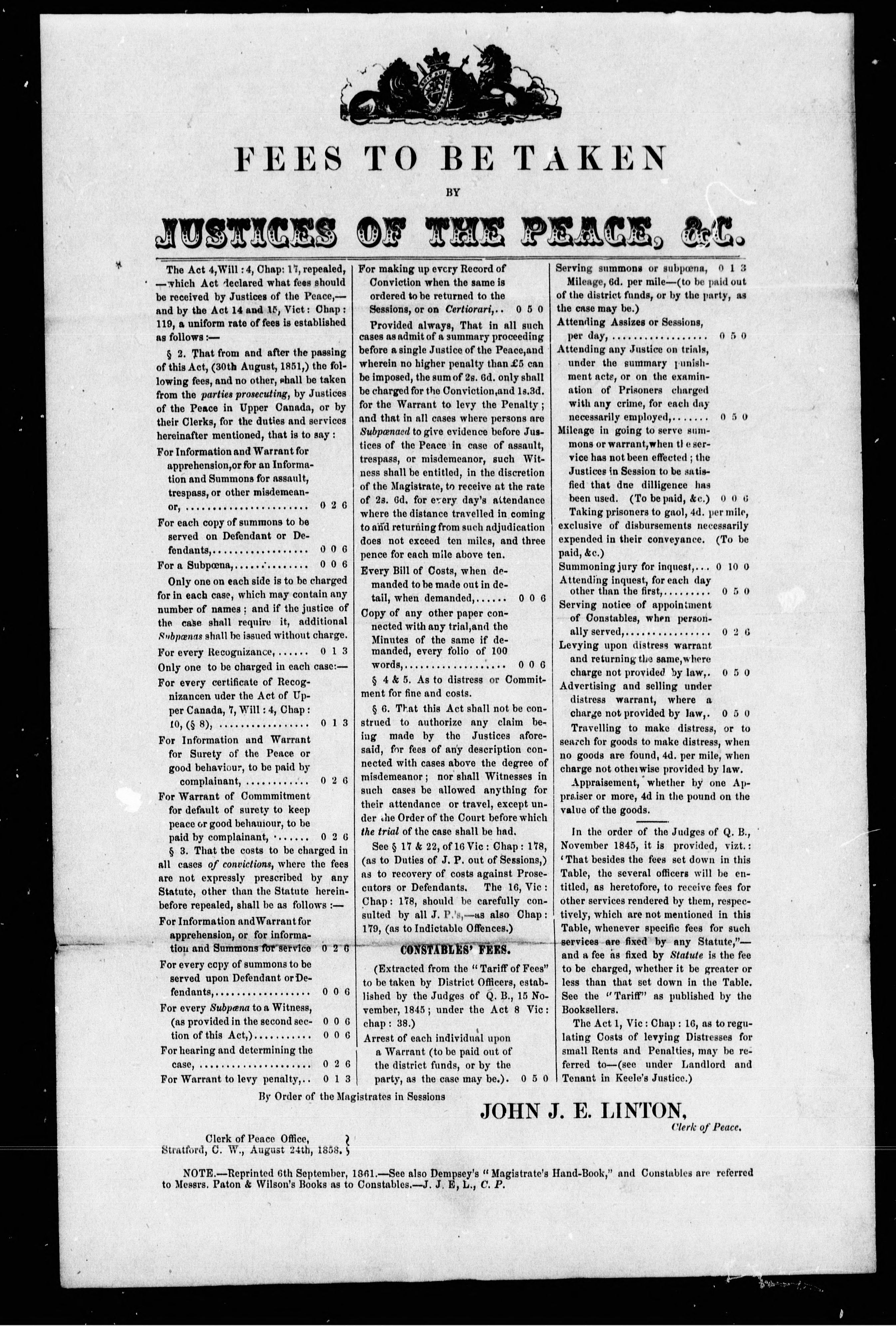 Dated: Clerk of the Peace Office, Stratford, C.W., August 24th, 1858.