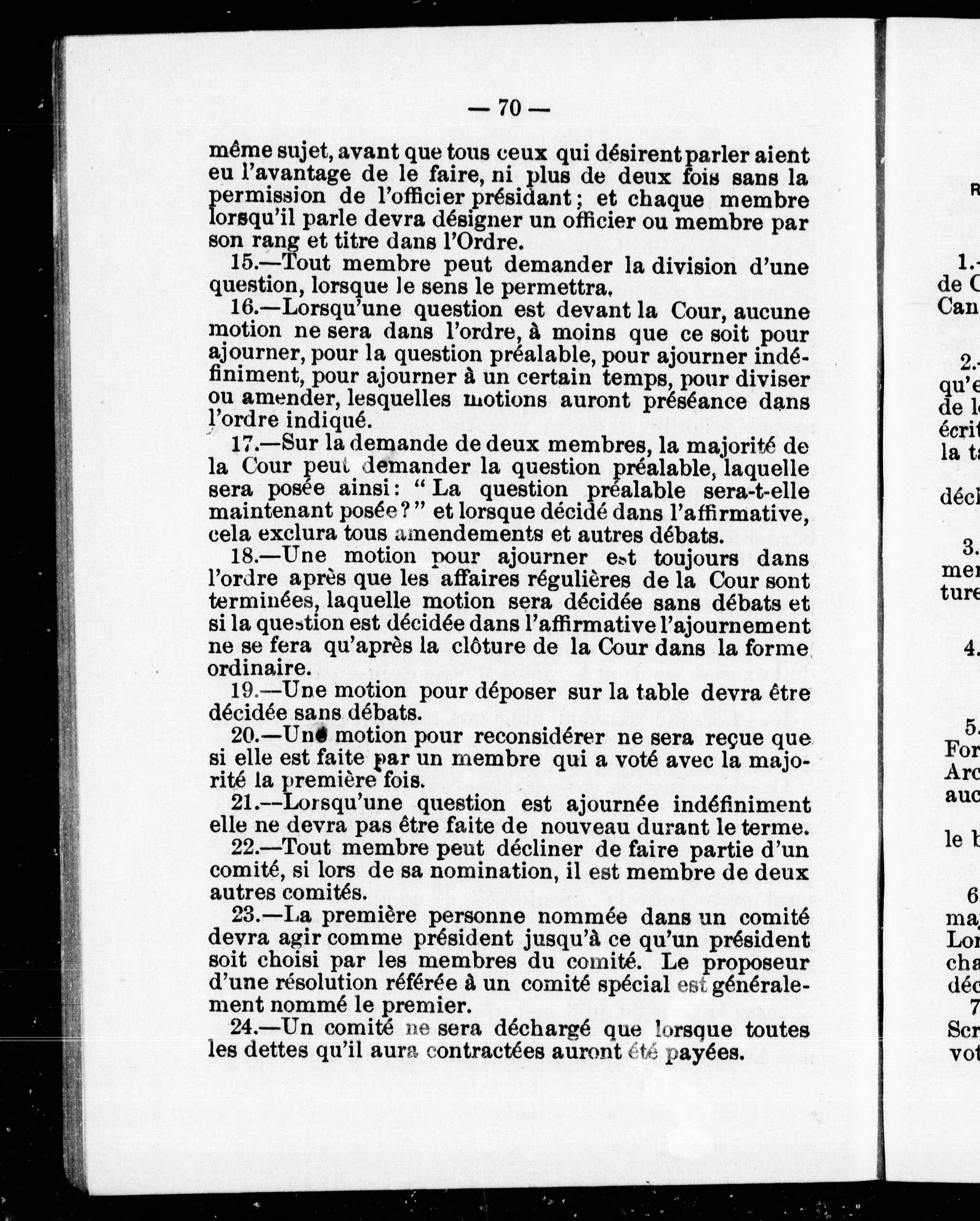 Constitutions, lois d'assurance, de bénéfices en maladie et funé raires, et régles d'ordre de l'Ordre canadien des forestiers, tels qu' adoptés à la session de la Haute cour, tenue à Montréal en juin 1896 : ces constitutions sont traduites de l'anglais ..