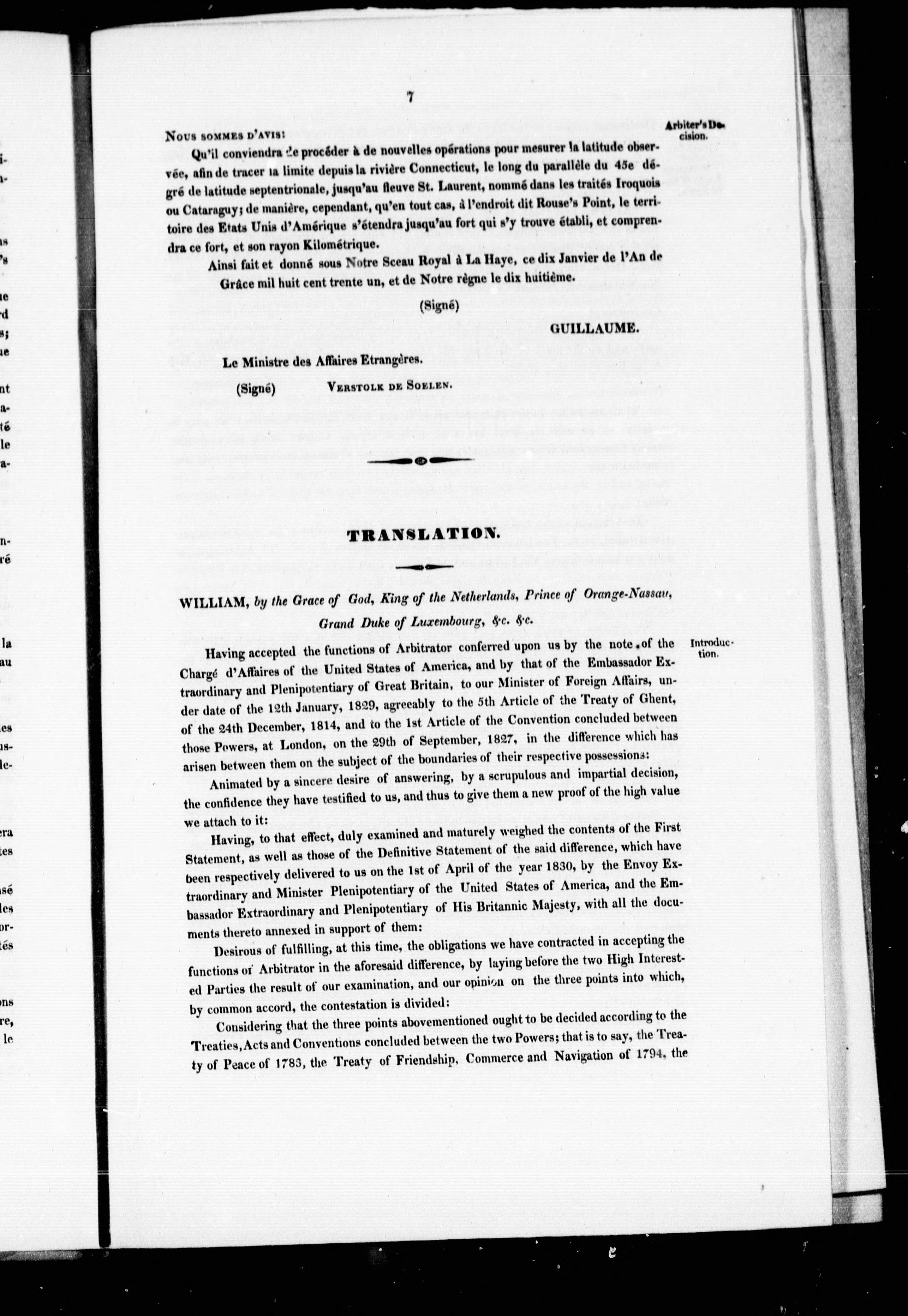 Dated and signed: Thus done and given under our Royal Seal, at the Hague, this tenth day of January, in the year of our Lord one thousand eight hundred and thirty-one ... William, The Minister of Foreign Affairs, Verstolk de Soelen.