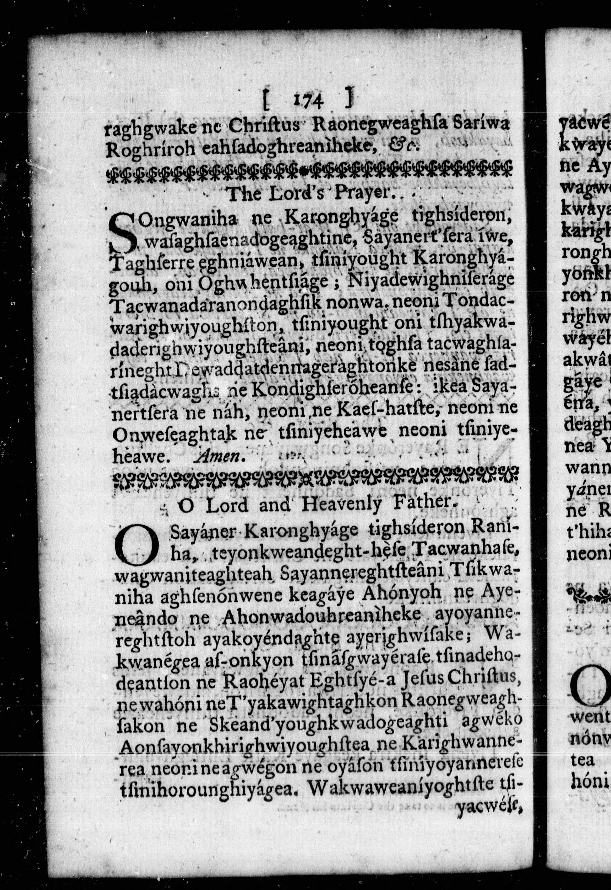 The order for morning and evening prayer, and administration of the sacraments, and some other offices of the Church of England : together with a collection of prayers, and some sentences of the Holy Scriptures, necessary for knowledge and practice = Ne yakawea Niyadewighniserage Yondereanayendakhkwa Orhoenké ne, neoni Yogarask-ha Oghseragwégouh ..