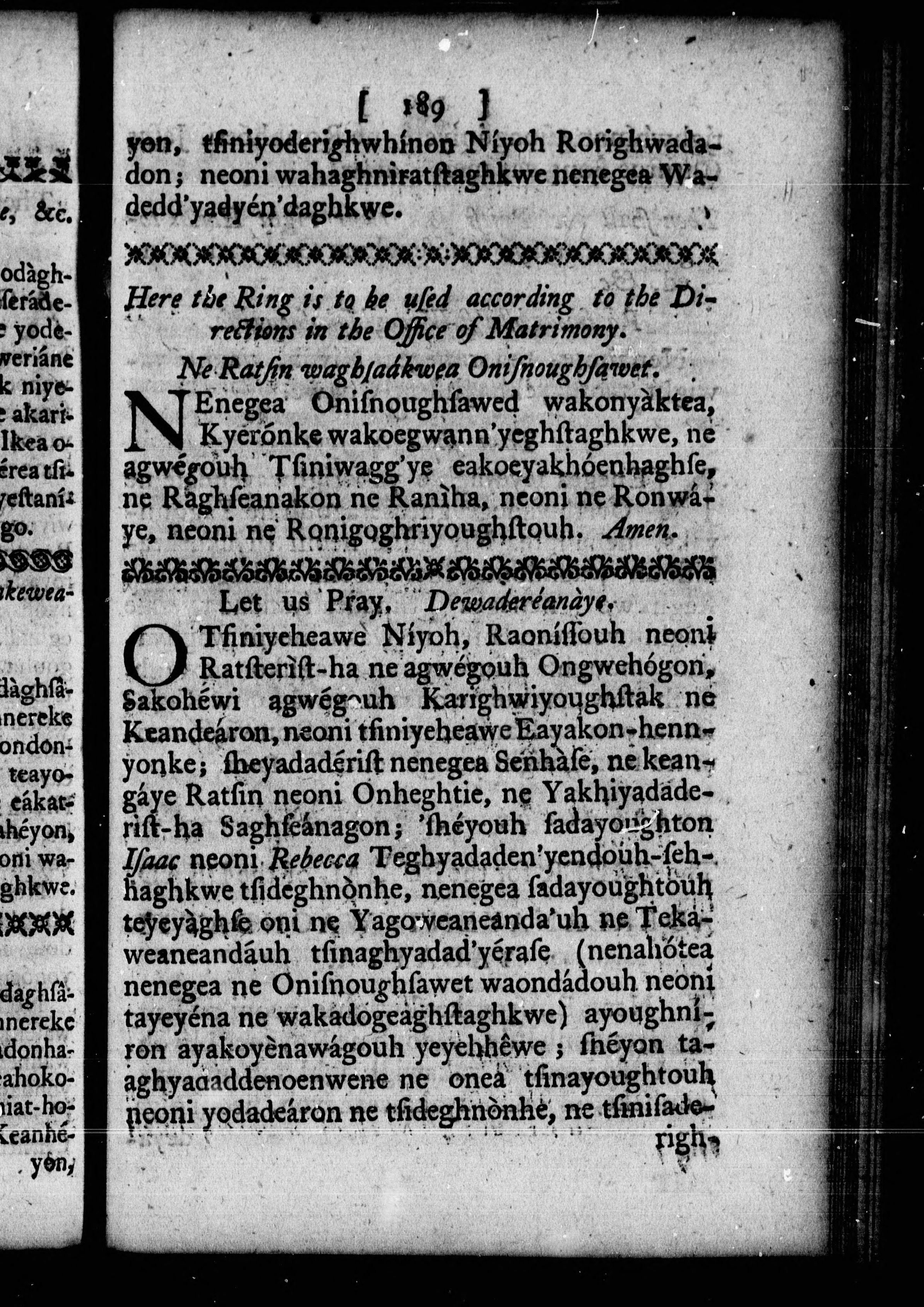 The order for morning and evening prayer, and administration of the sacraments, and some other offices of the Church of England : together with a collection of prayers, and some sentences of the Holy Scriptures, necessary for knowledge and practice = Ne yakawea Niyadewighniserage Yondereanayendakhkwa Orhoenké ne, neoni Yogarask-ha Oghseragwégouh ..