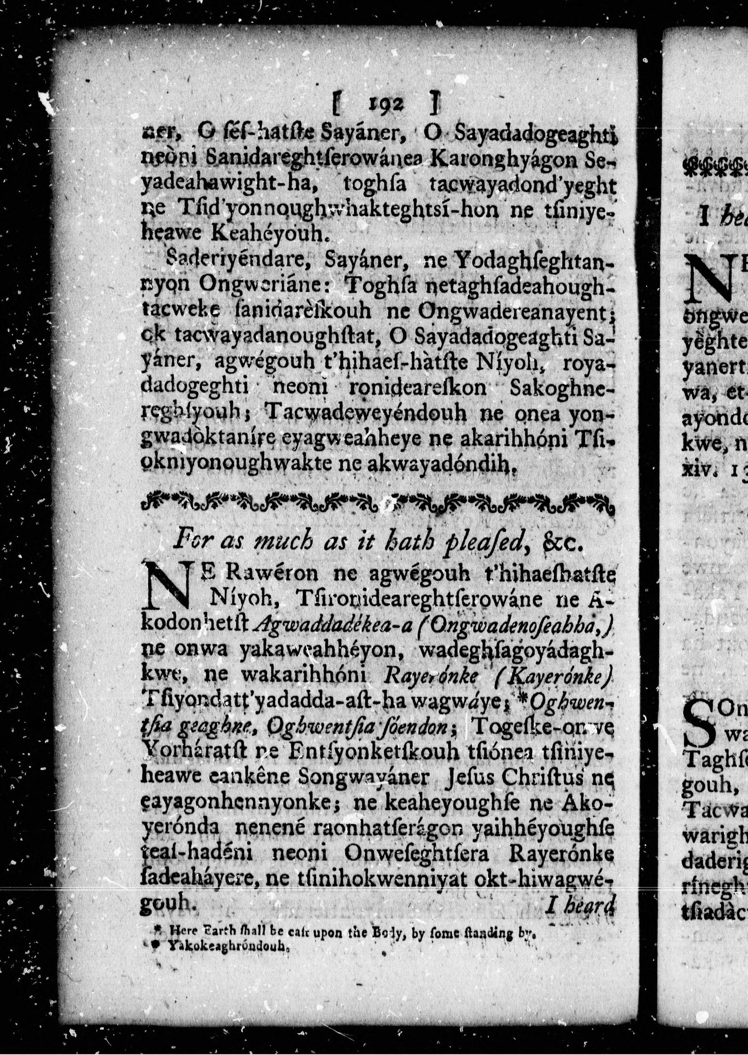 The order for morning and evening prayer, and administration of the sacraments, and some other offices of the Church of England : together with a collection of prayers, and some sentences of the Holy Scriptures, necessary for knowledge and practice = Ne yakawea Niyadewighniserage Yondereanayendakhkwa Orhoenké ne, neoni Yogarask-ha Oghseragwégouh ..