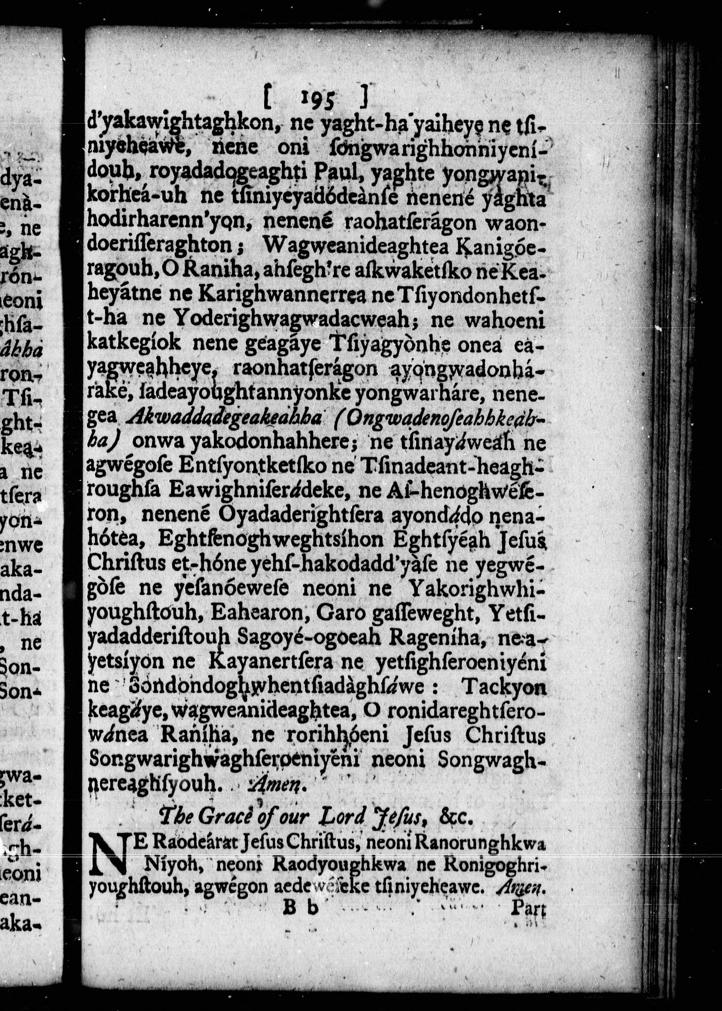 The order for morning and evening prayer, and administration of the sacraments, and some other offices of the Church of England : together with a collection of prayers, and some sentences of the Holy Scriptures, necessary for knowledge and practice = Ne yakawea Niyadewighniserage Yondereanayendakhkwa Orhoenké ne, neoni Yogarask-ha Oghseragwégouh ..