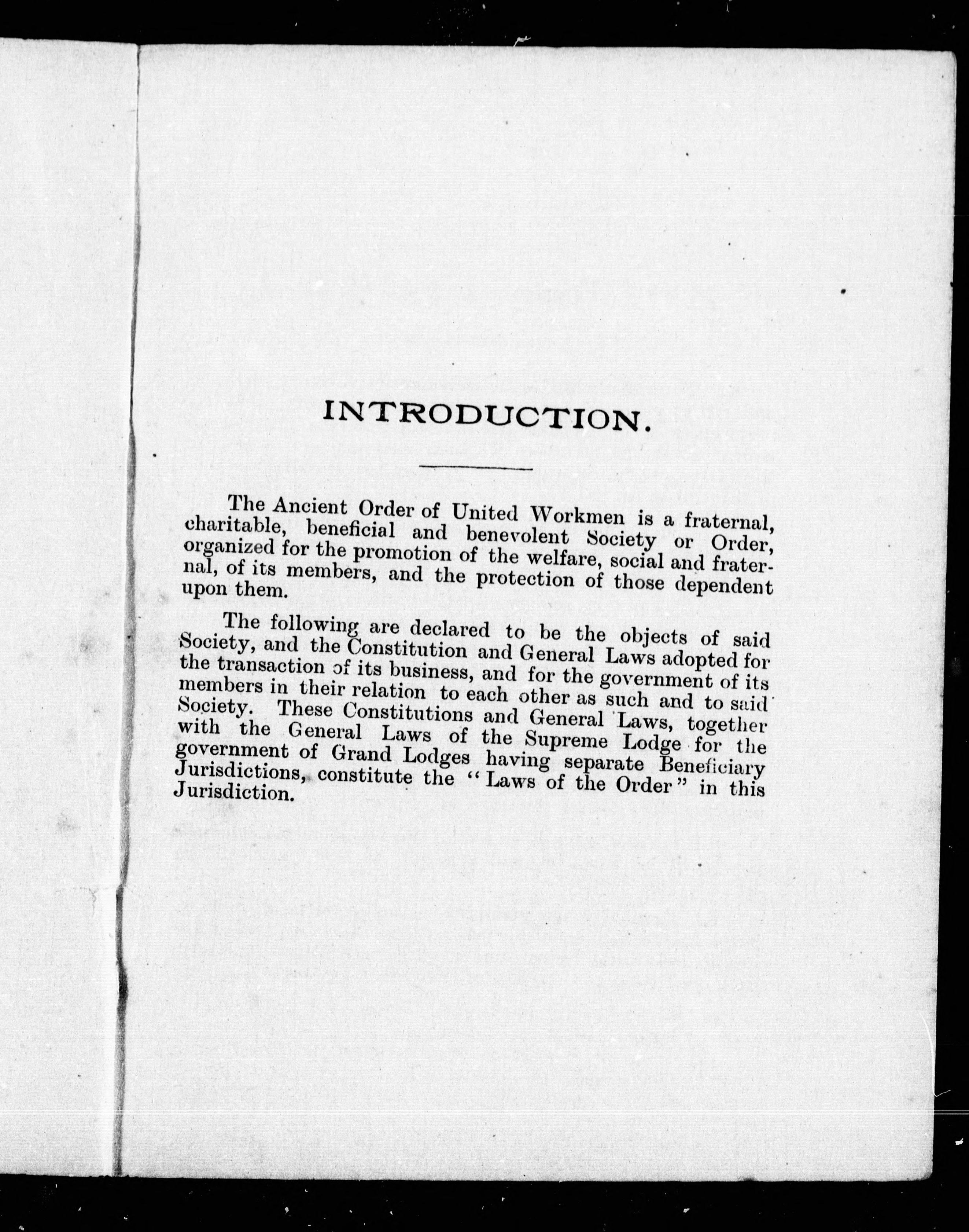Constitution and standing regulations of the Grand Lodge Ancient Order United Workmen of Ontario.