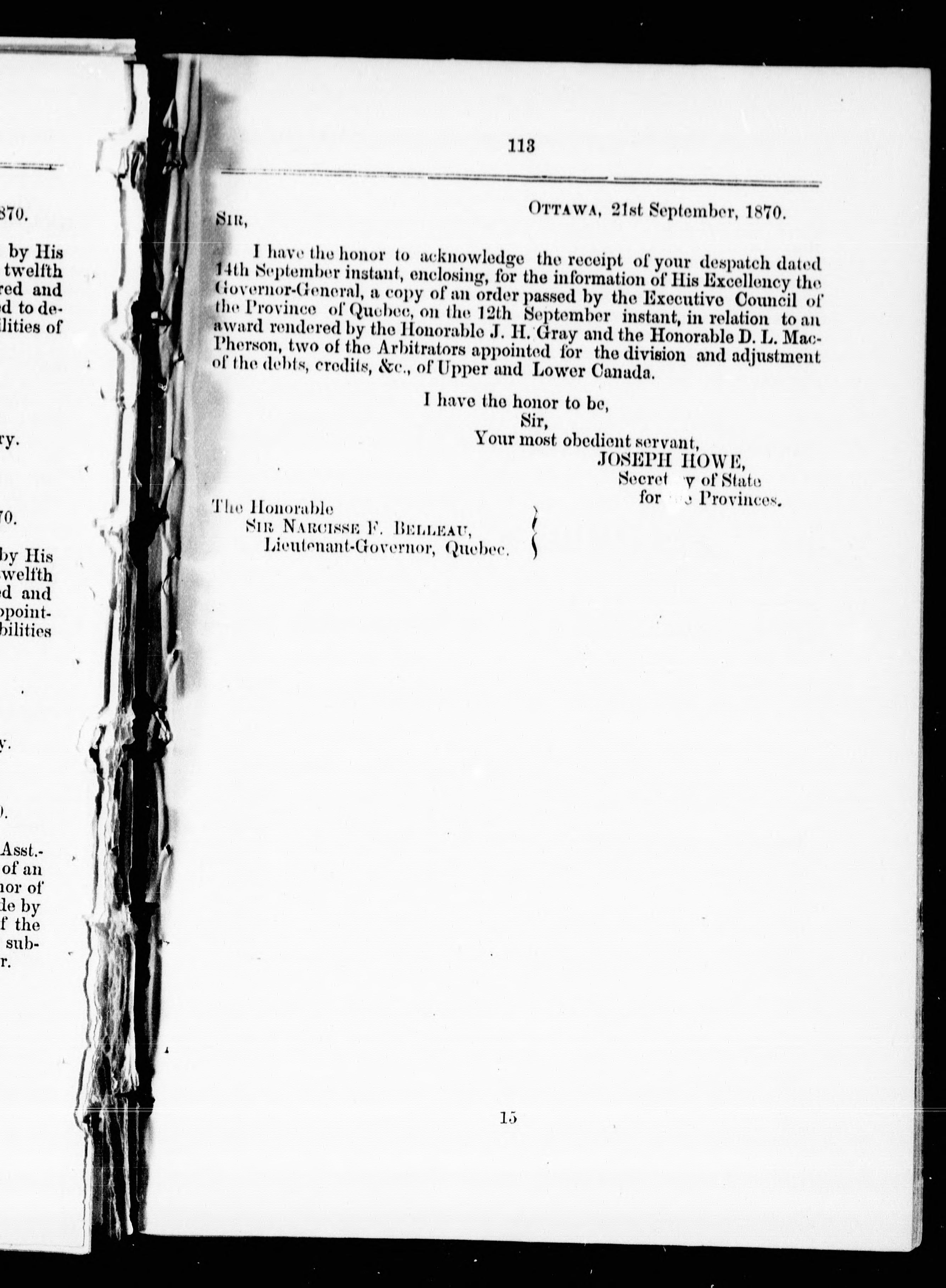 - Arbitration between Ontario and Quebec under the British North America Act, 1867.