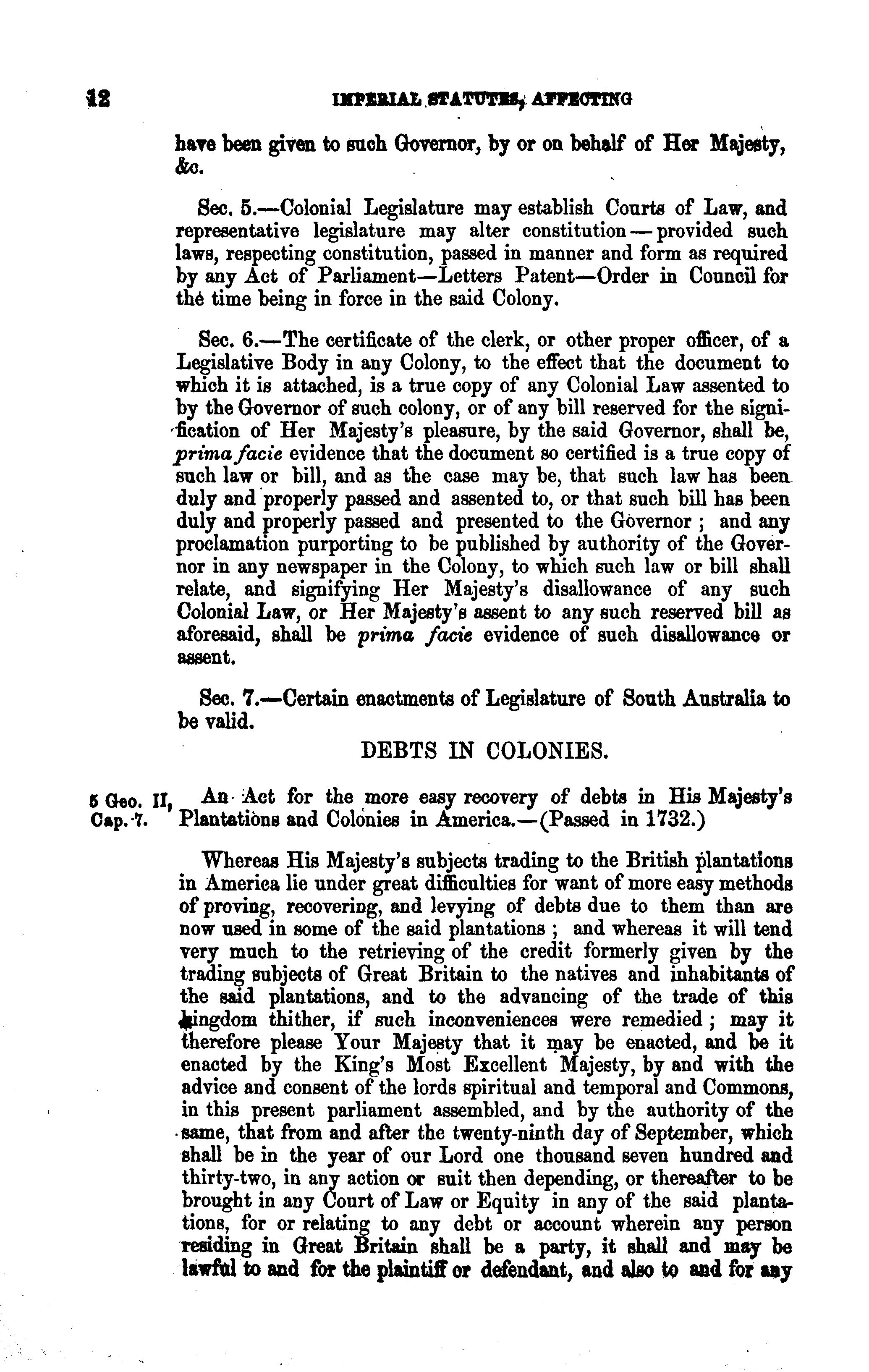 Imperial statutes affecting British North America and some of the British possessions.