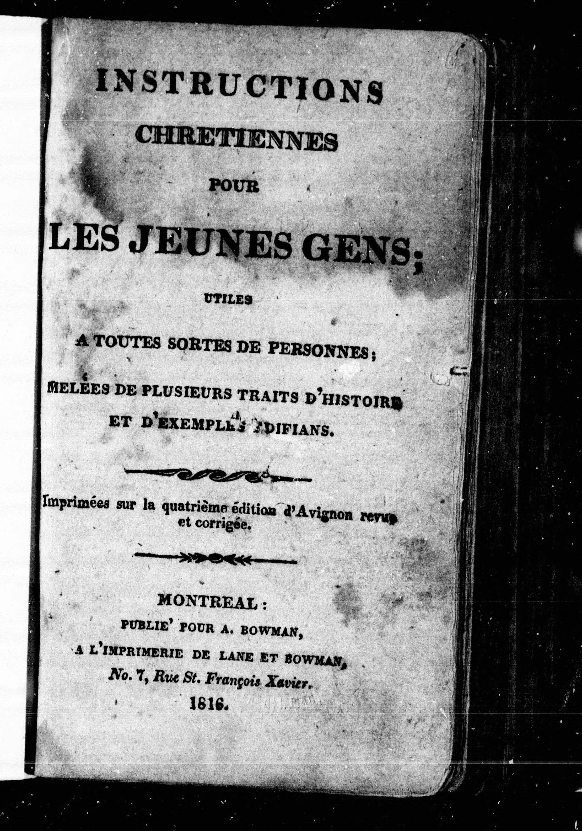 Montréal : Publié pour A. Bowman, a l'imprimerie de Lane et Bowman ..., 1816.; 342 images, 334 with full-text search