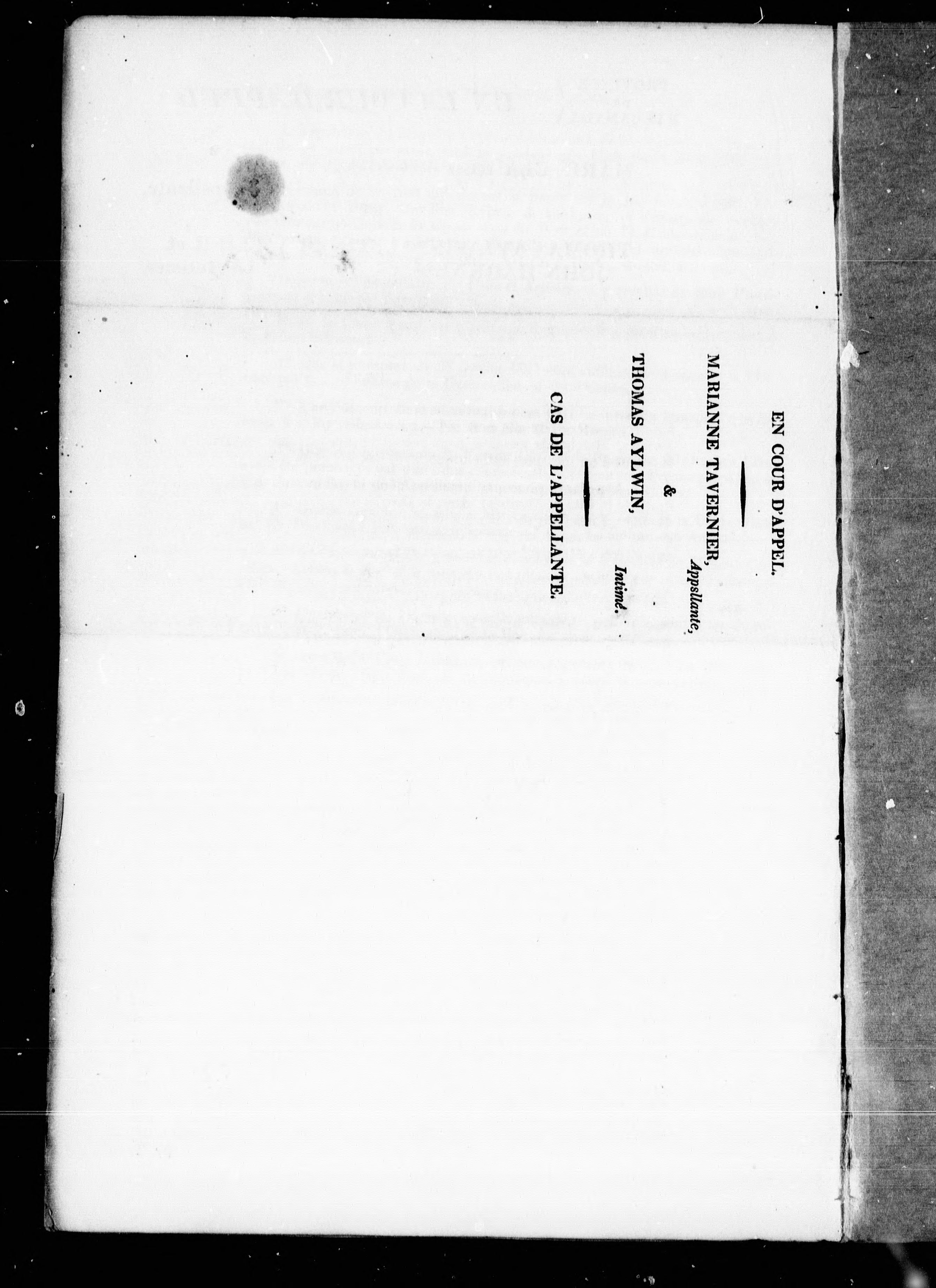 En Cour d'appel : Marianne Tavernier, appsllante [sic] & Thomas Aylwin, intimé : cas de l'appellante [sic].