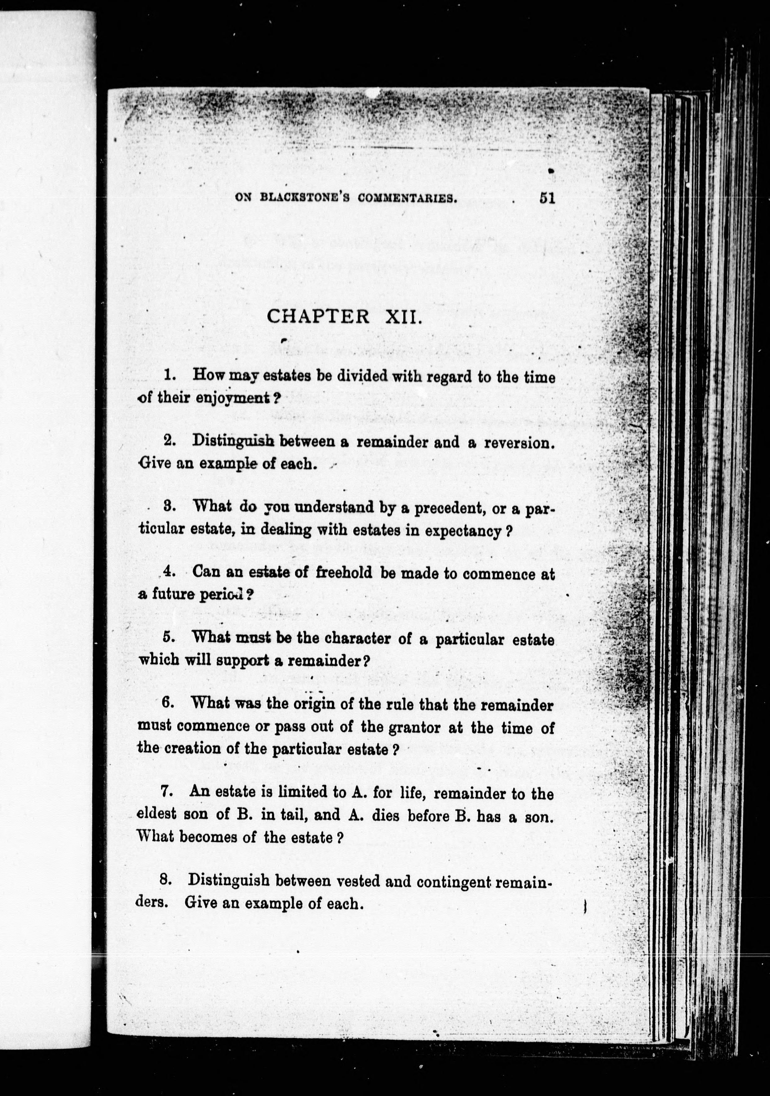 Examination questions on Blackstone's commentaries on real property