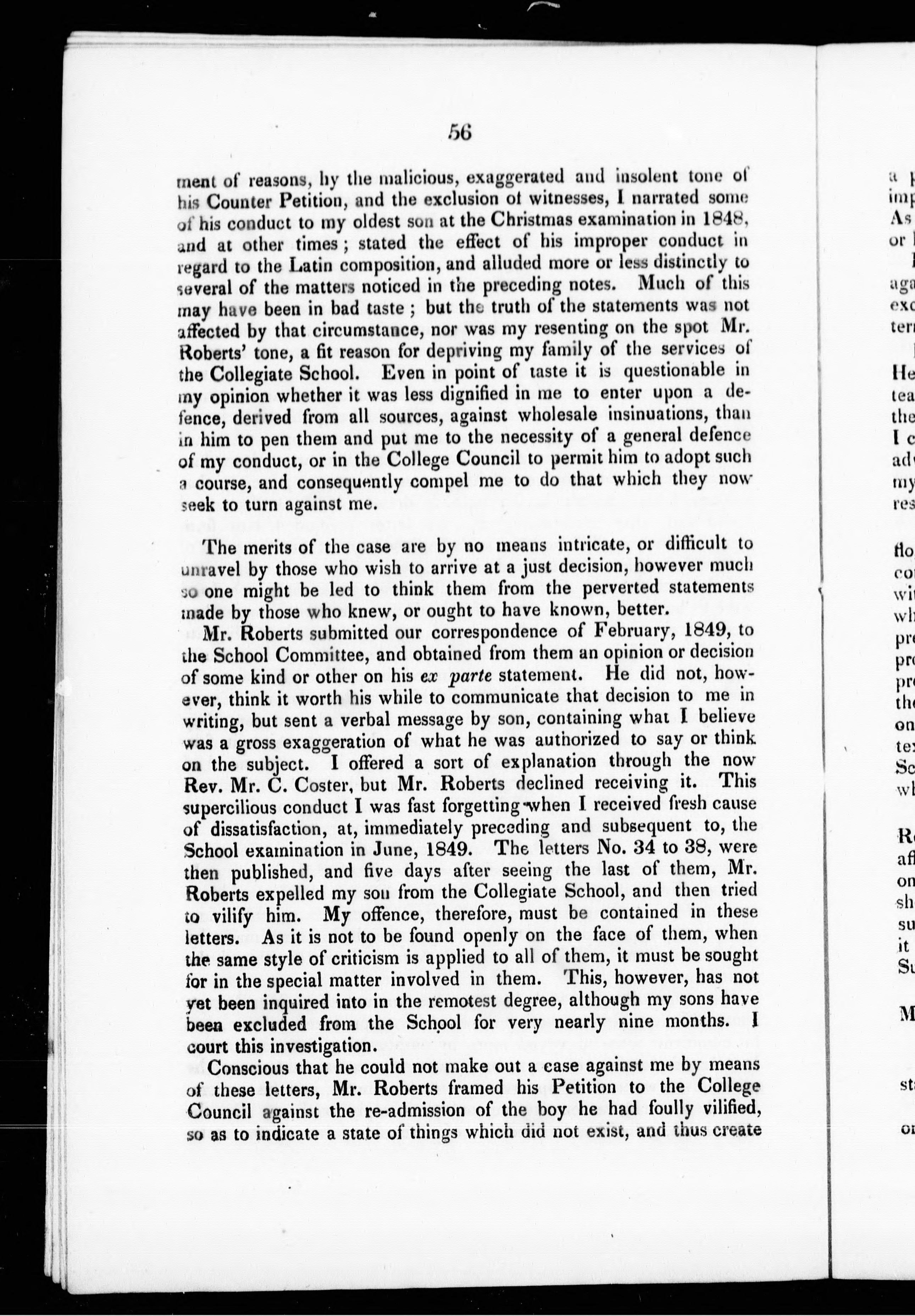 Includes correspondence between John Gregory and George Roberts, the principal of the Collegiate Grammar School.