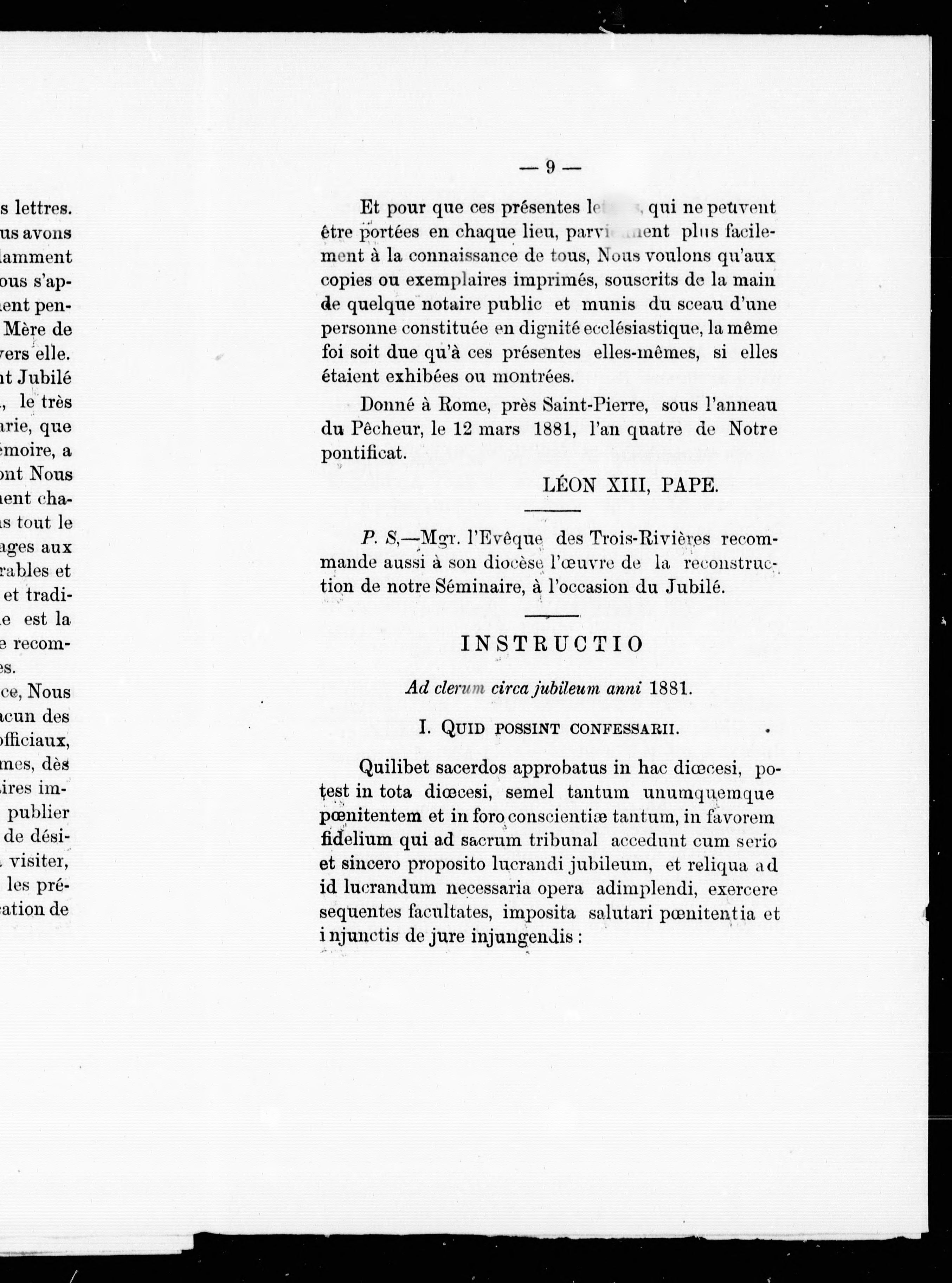 Avec: Lettres apostoliques de notre très S.P. le pape Léon XIII annonç ant un jubilé extraordinaire.