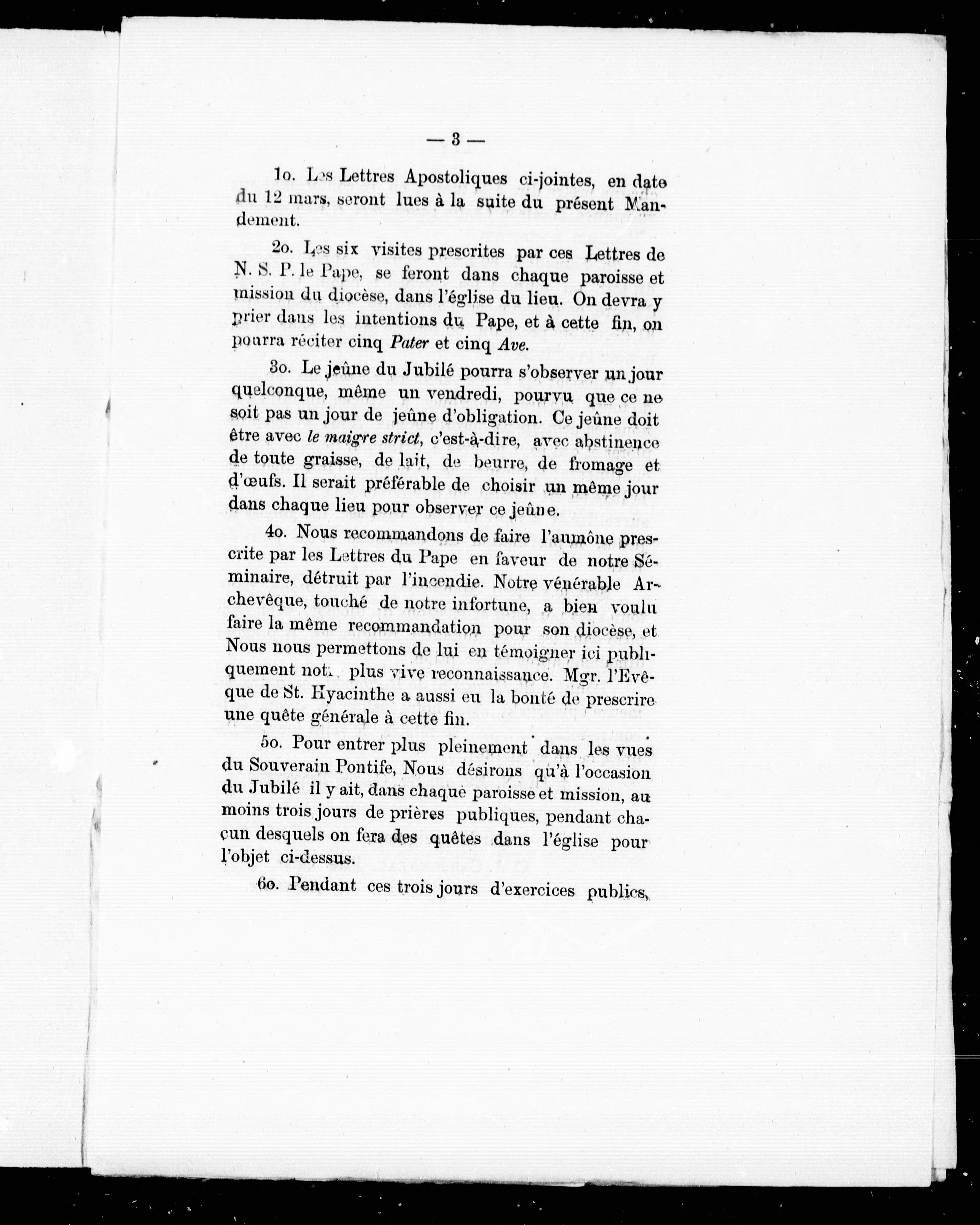 Mandement annonçant un jubilé extraordinaire :