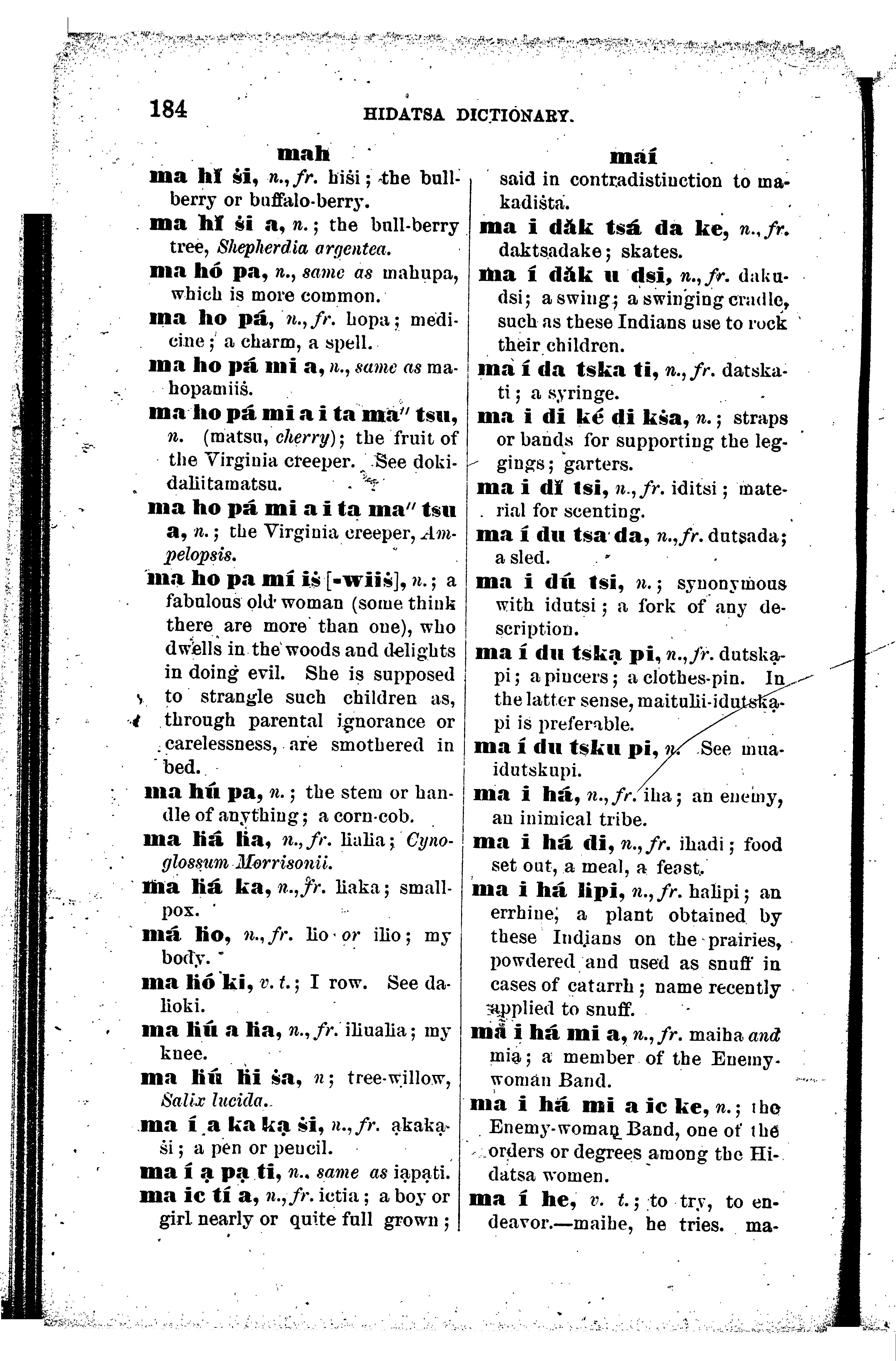 Text in English and Hidatsa.