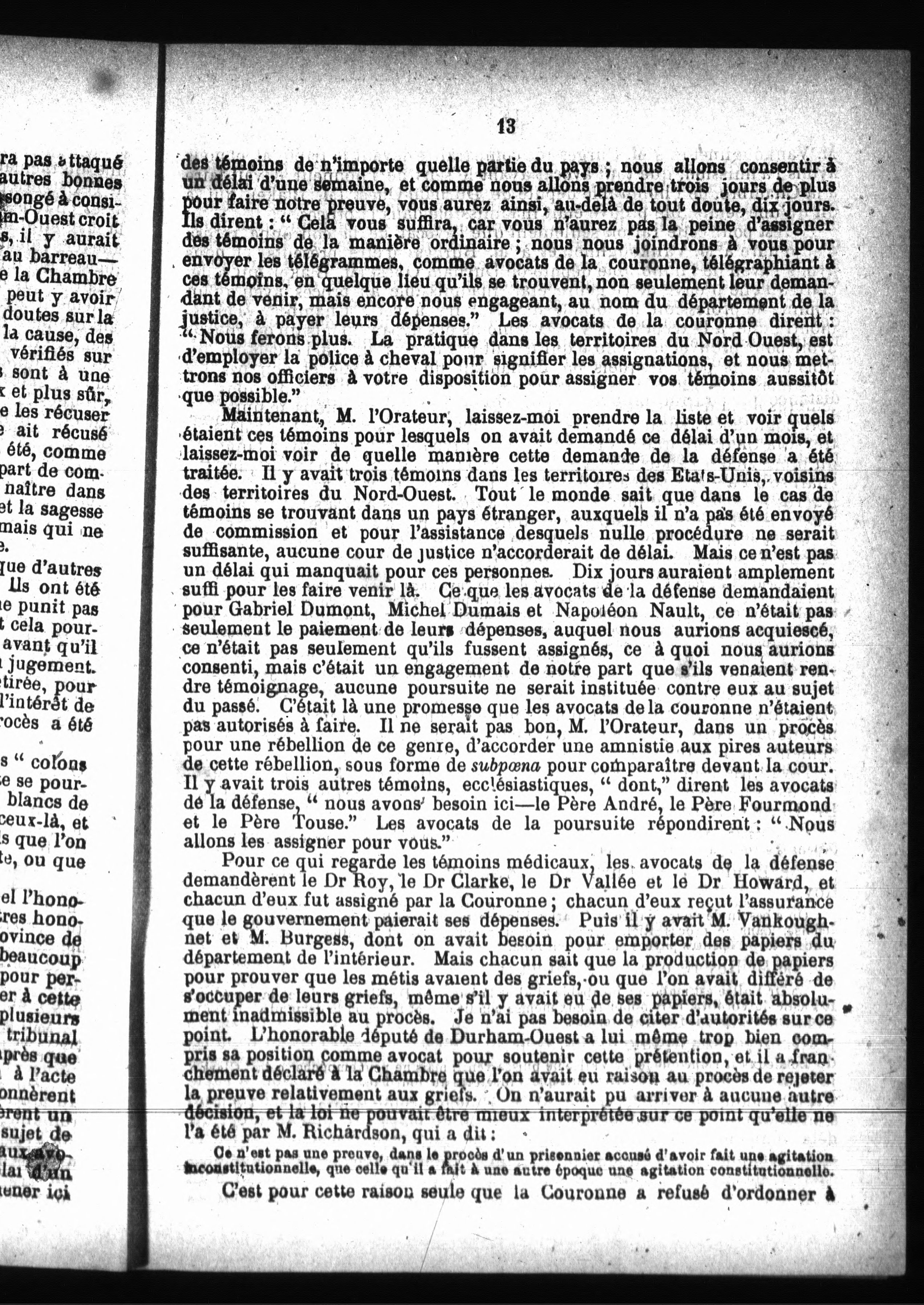 Discours sur la question Riel :