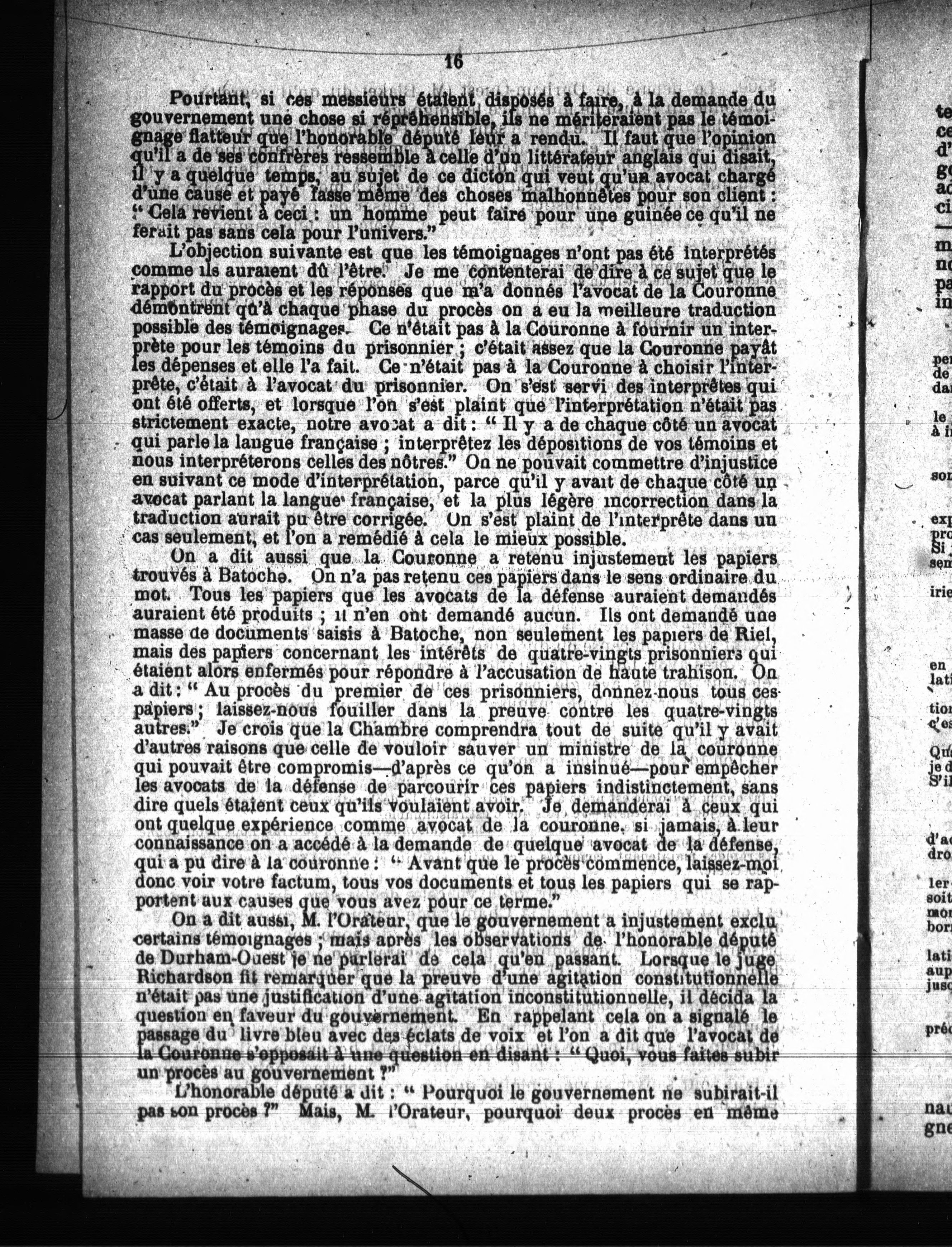 Discours sur la question Riel :