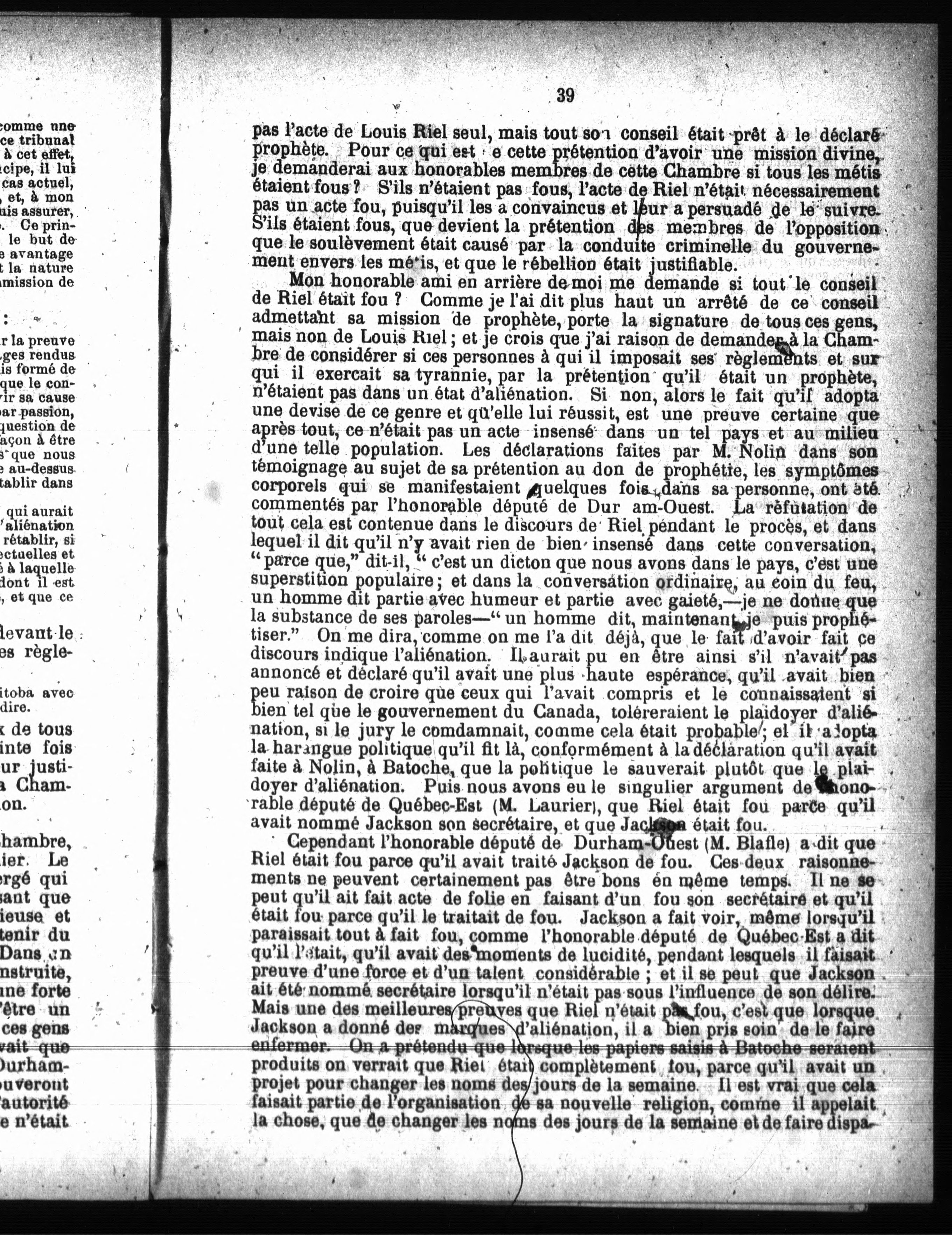 Discours sur la question Riel :