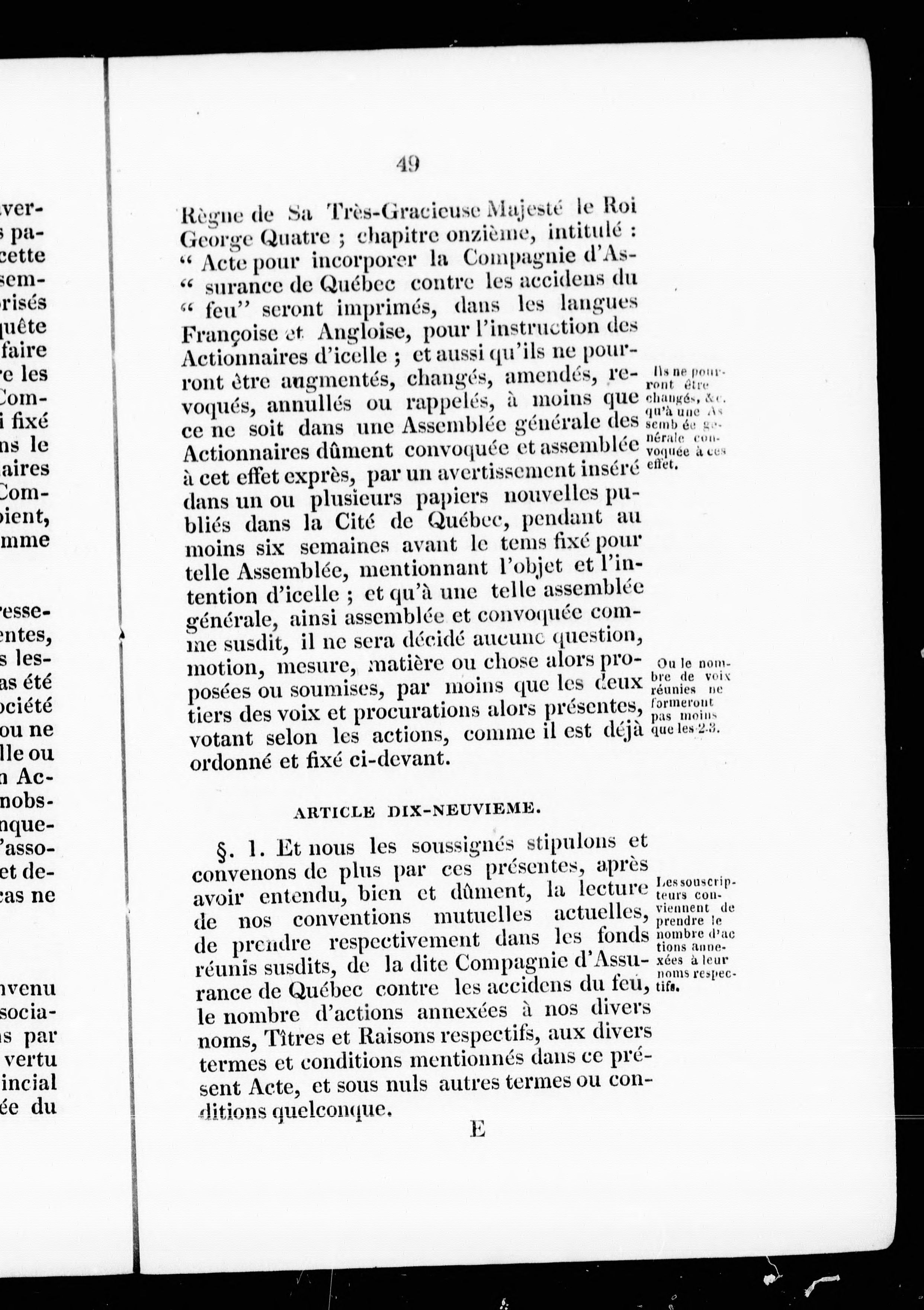 Statuts, règles et règlemens de la Compagnie d'assurance de Québec contre les accidens du feu : revus, corrigés et approuvé s à une assemblée générale des actionnaires ... le tout précédé d'une introduction explicative. - Adresse bibliographique