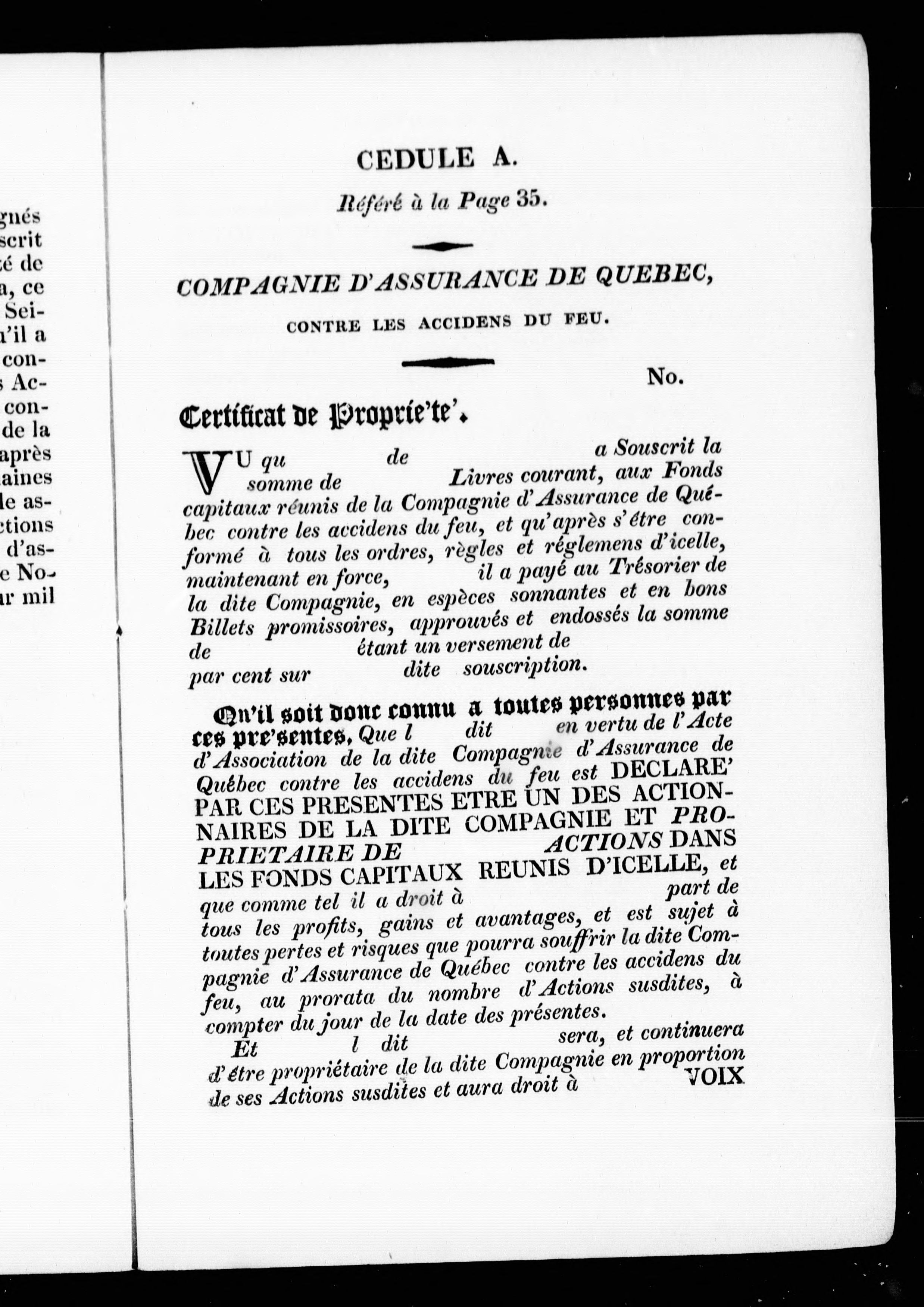 Compagnie d'assurance de Québec contre les accidens du feu.