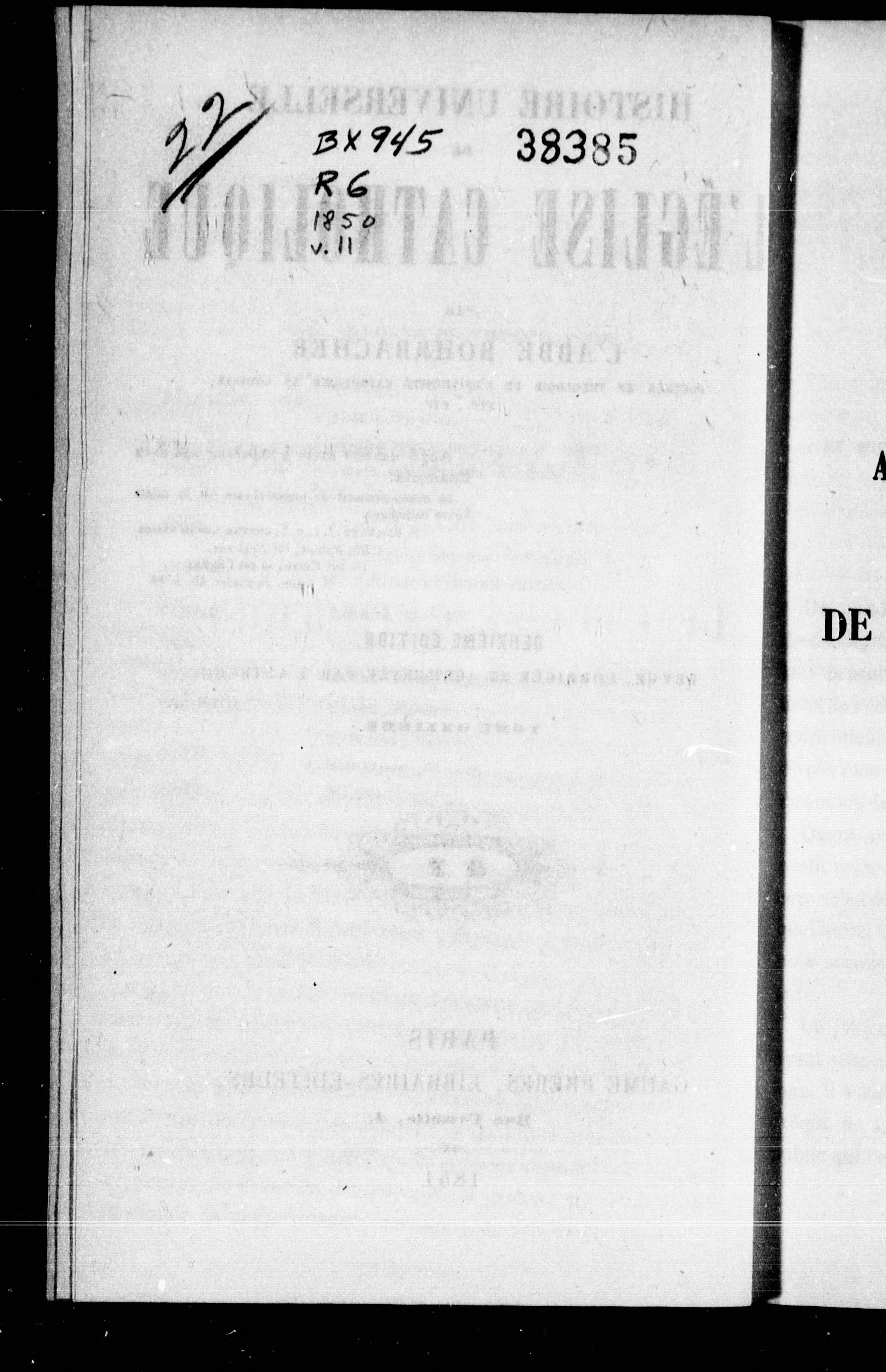Faux-titre: Histoire universelle de l'église catholique : tome onzième.