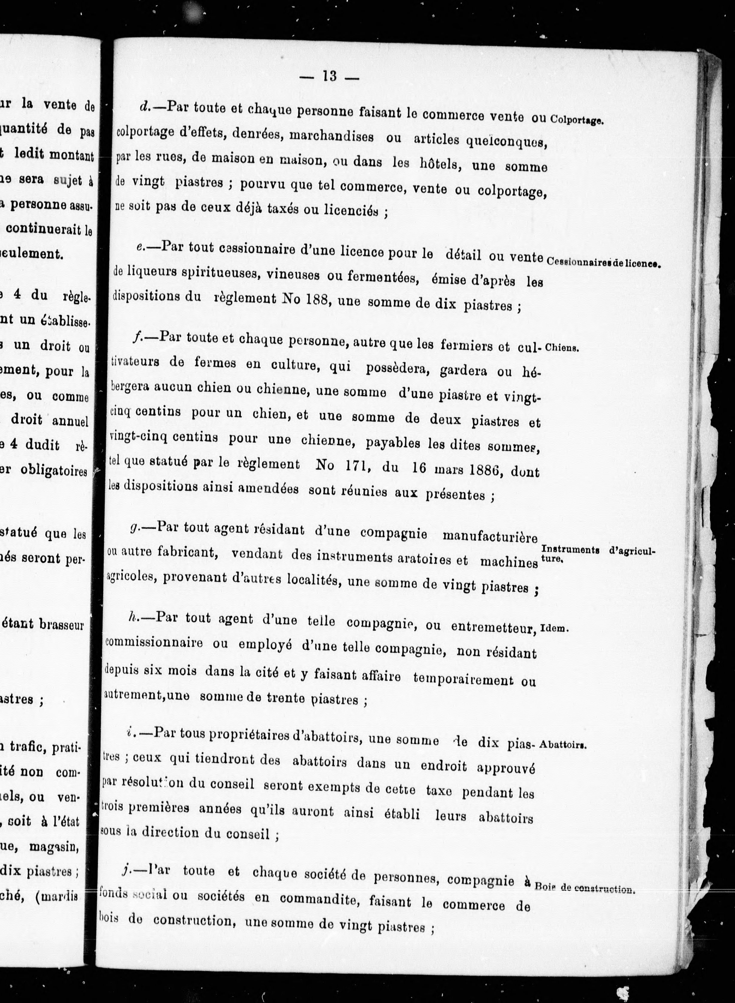 Règlement du Conseil de la cité de Sorel concernant les taxes, cotisations, charges et droits annuels :