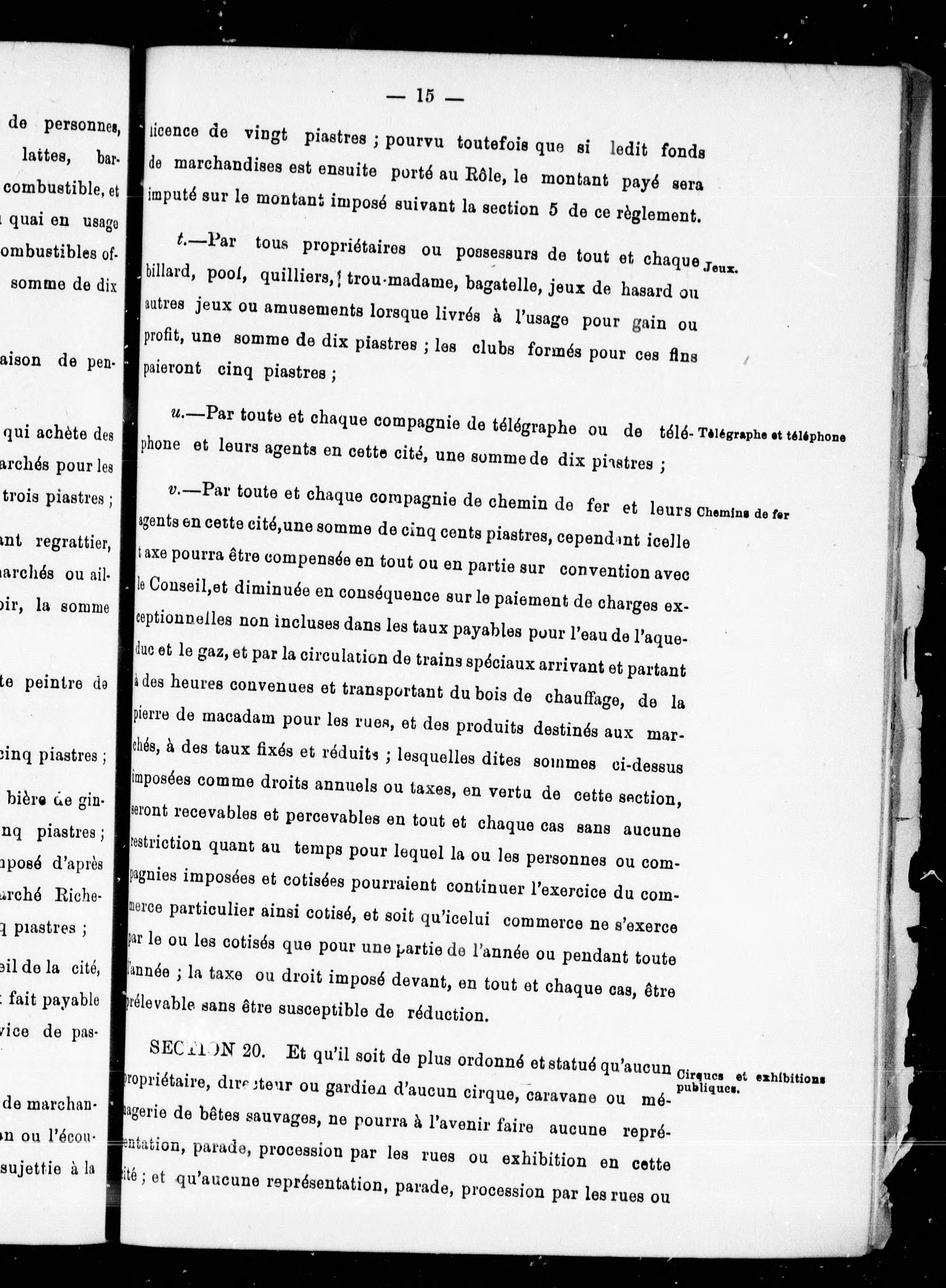 Règlement du Conseil de la cité de Sorel concernant les taxes, cotisations, charges et droits annuels :