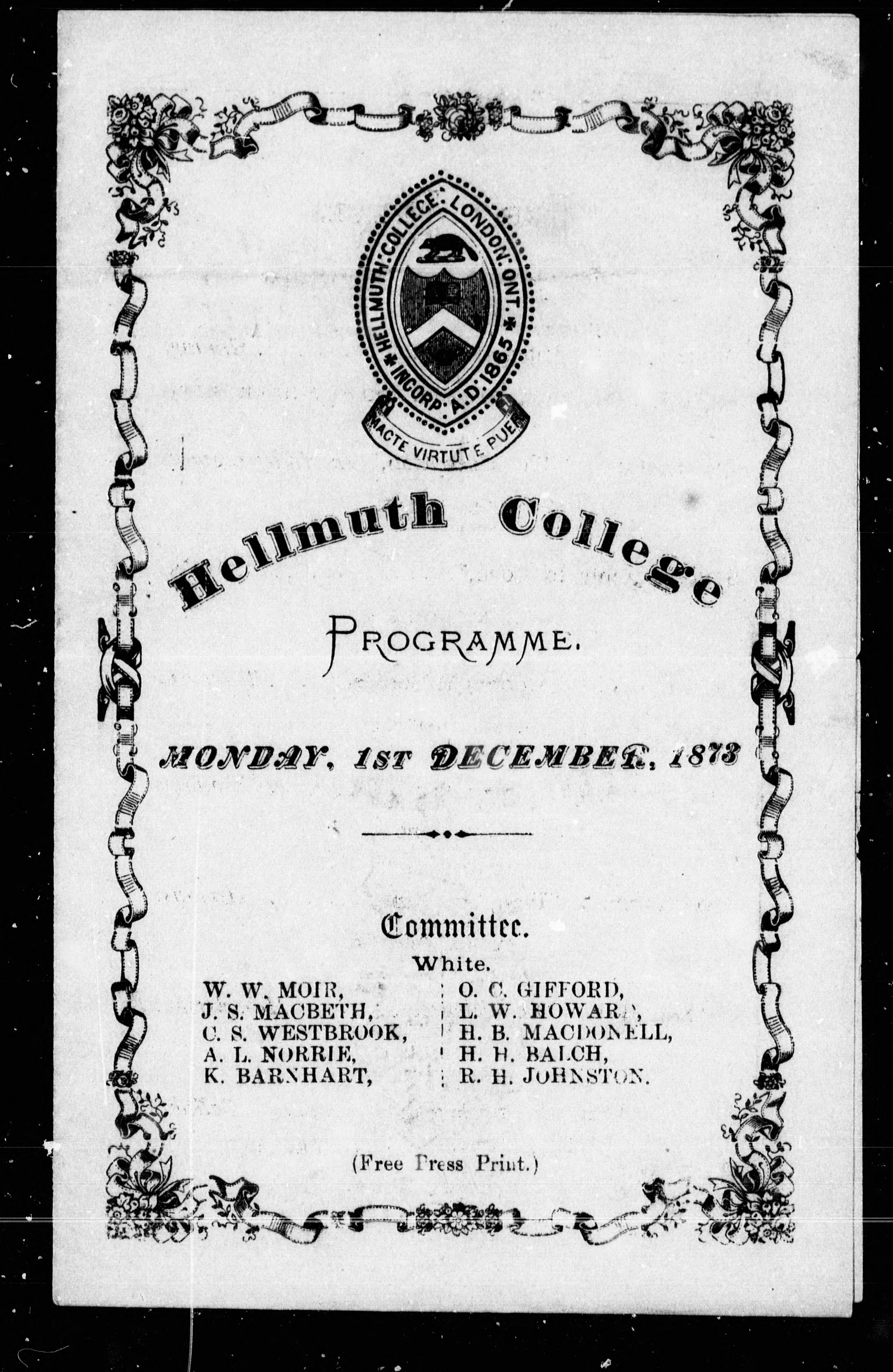 - Hellmuth College, programme : Monday, 1st December, 1873 ..