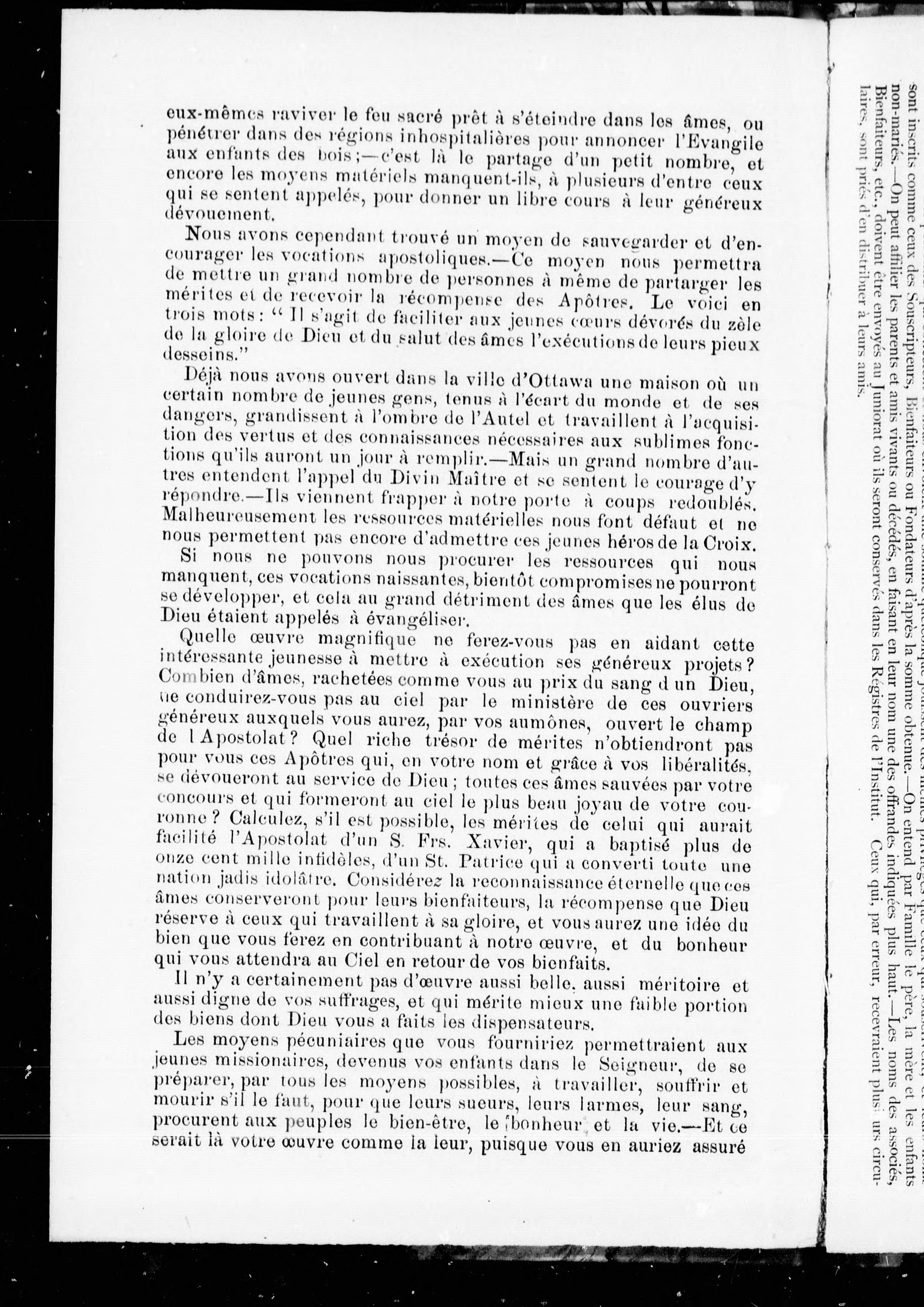 Les juniorats ou oeuvre des jeunes missionnaires fondée et dirigée par les PP. Oblats de Marie Immaculée.