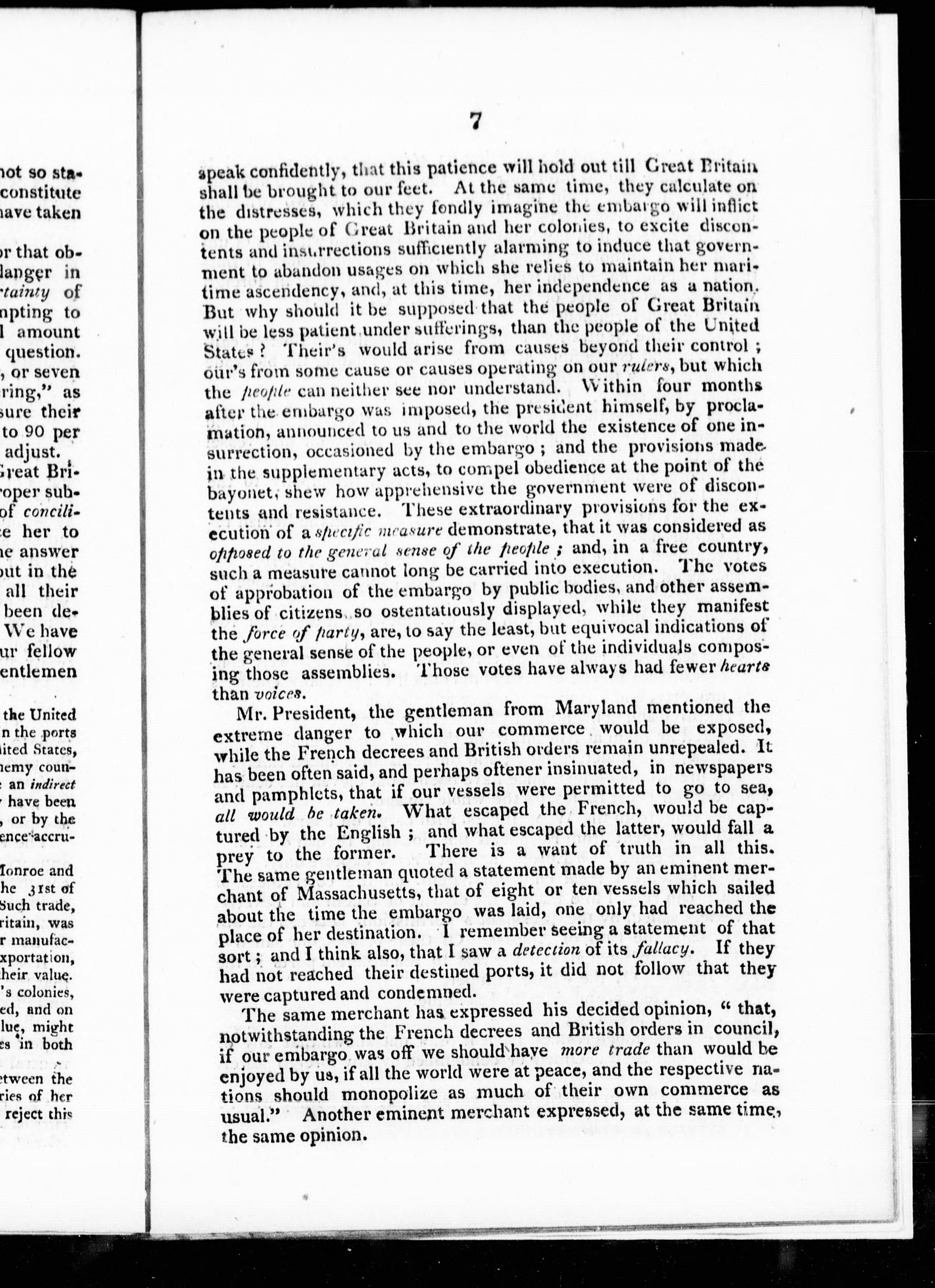 - Mr. Pickering's speech in the Senate of the United States, on the resolution offered by Mr. Hillhouse to repeal the several acts laying an embargo, November 30, 1808.