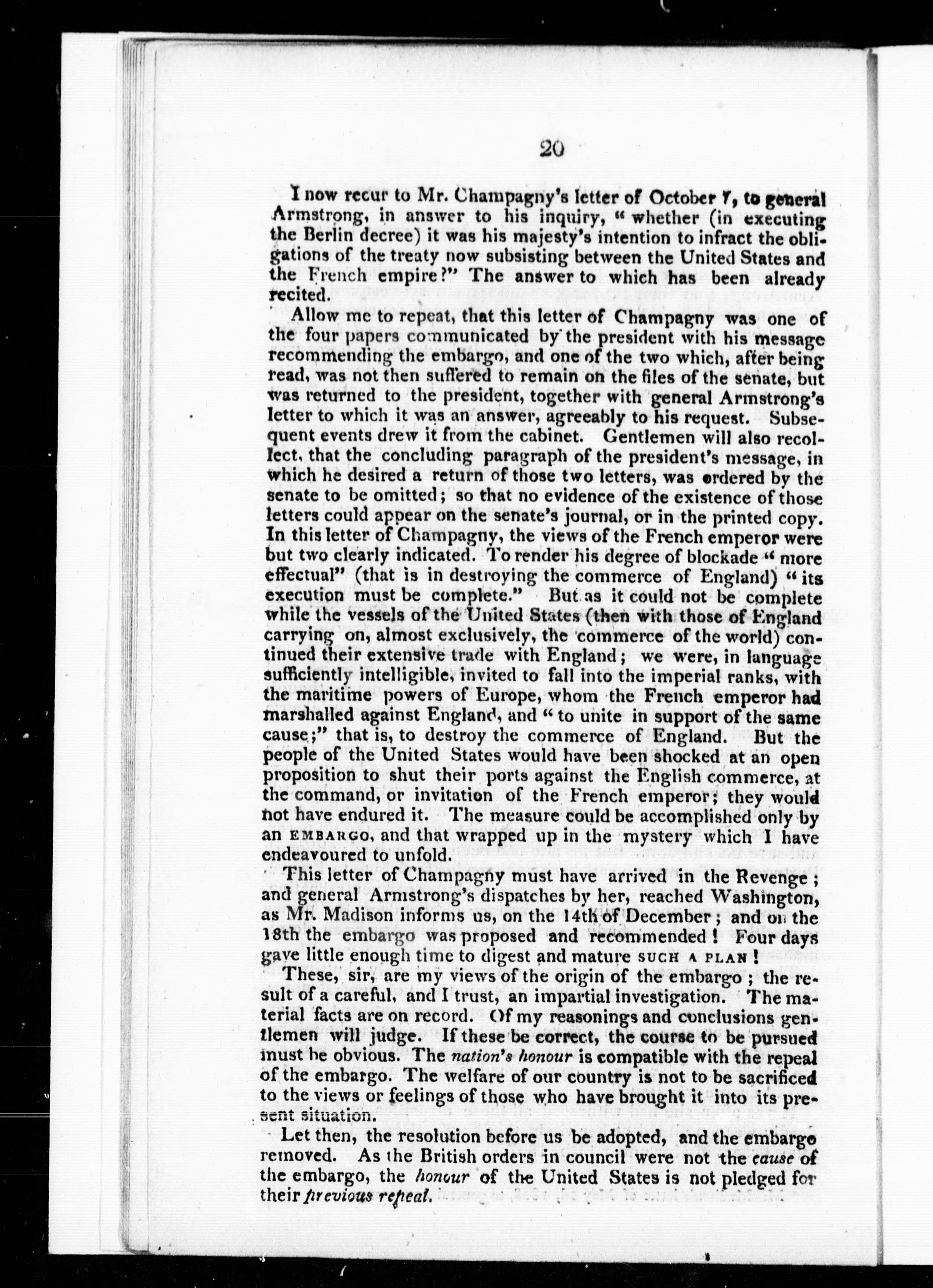 - Mr. Pickering's speech in the Senate of the United States, on the resolution offered by Mr. Hillhouse to repeal the several acts laying an embargo, November 30, 1808.