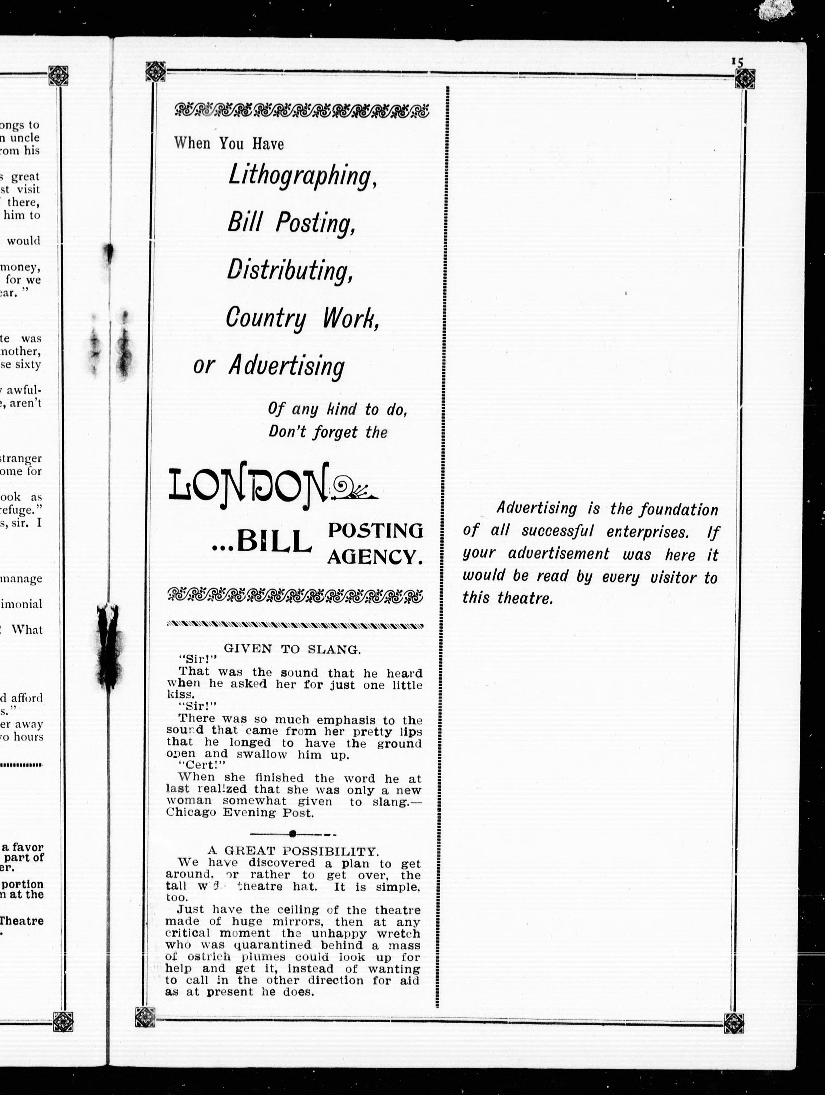 - Grand Opera House, London, Ont., programme : Tuesday, November 17th, 1896, Leavitt's superb spectacular extravaganza Spider and fly ..