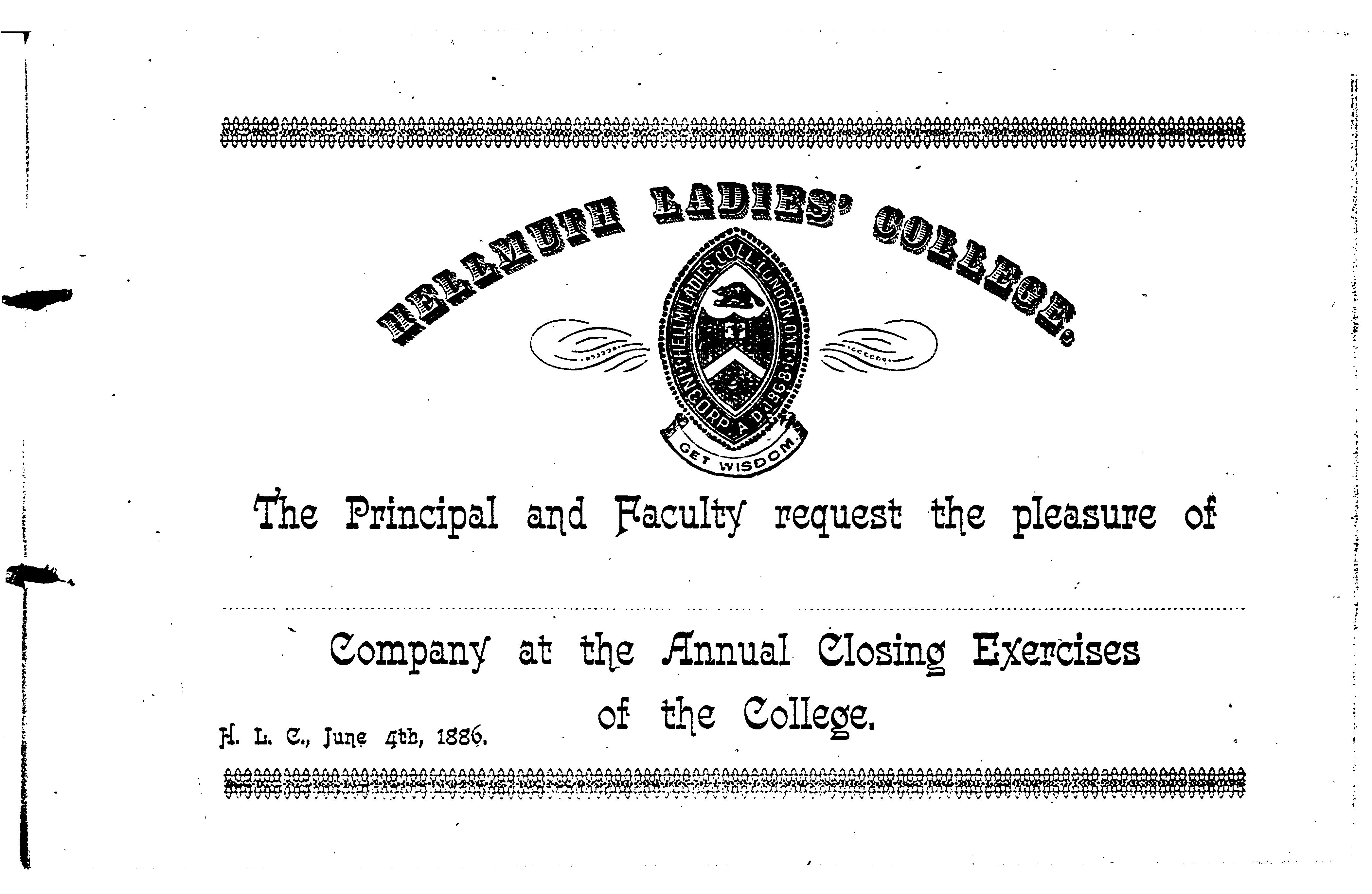 Hellmuth Ladies' College, London, Ont. : closing exercises June 14th, 16th, 18th, 20th, 21st, 22nd & 23rd, 1886. - Adresse bibliographique