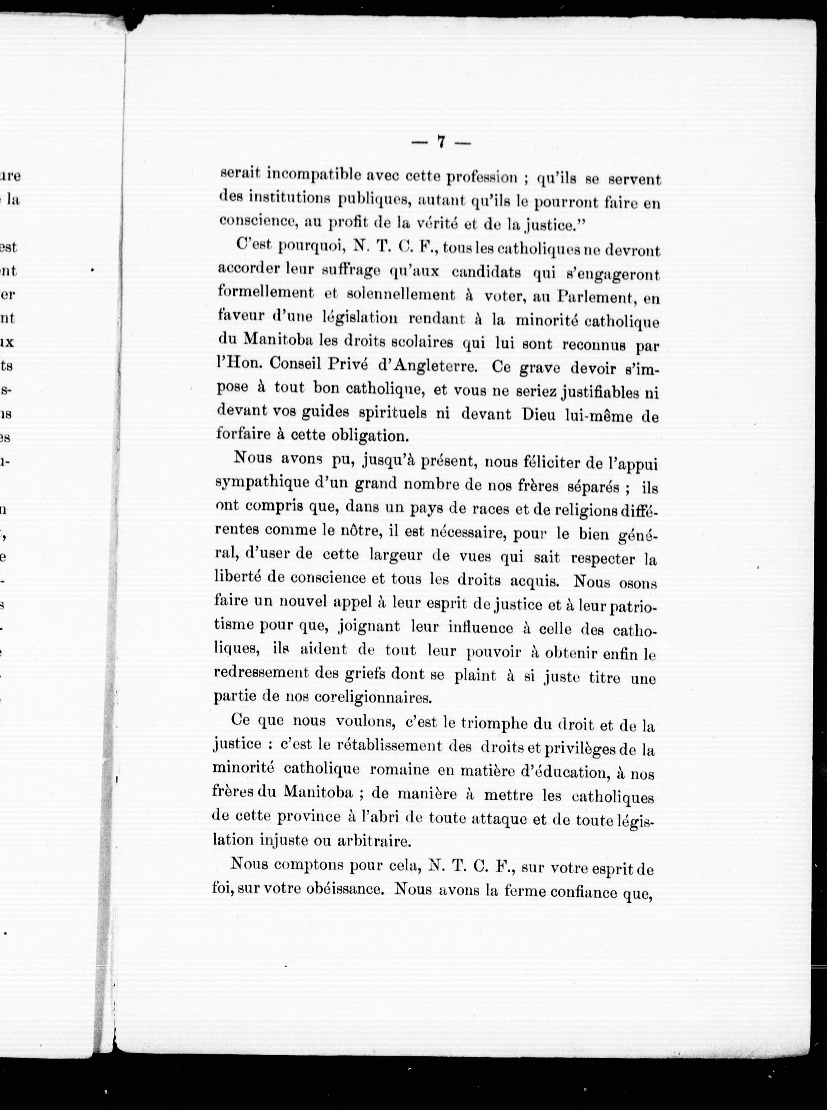 - Lettre pastorale de nos seigneurs les archevêques et évêques des provinces ecclésiastiques de Québec, de Montréal et d'Ottawa sur la question des écoles du Manitoba.
