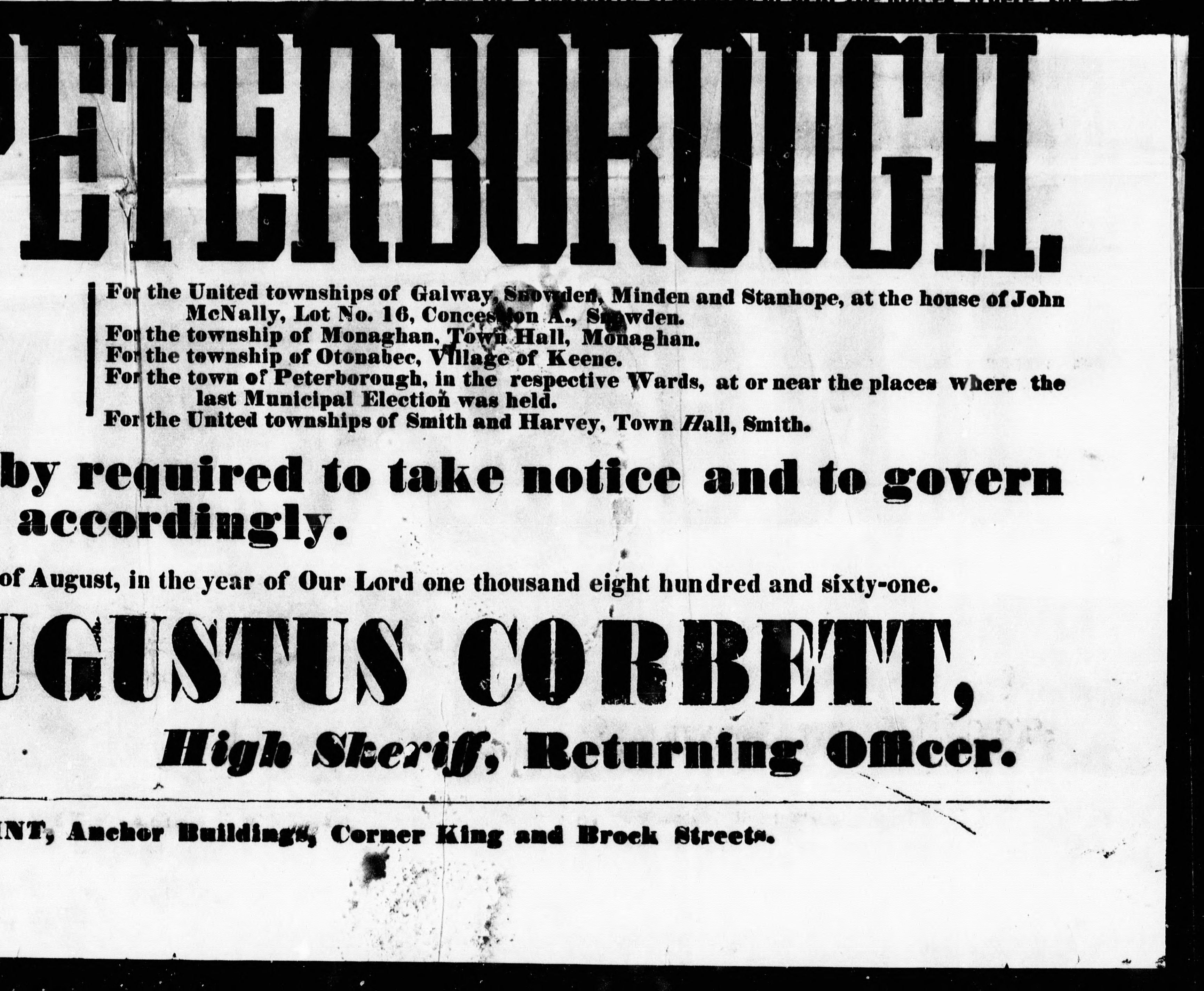 Signed and dated: at Kingston, this 26th day of the month of August, in the year of our Lord one thousand eight hundred and sixty-one, Thomas Augustus Corbett, high sheriff, returning officer.