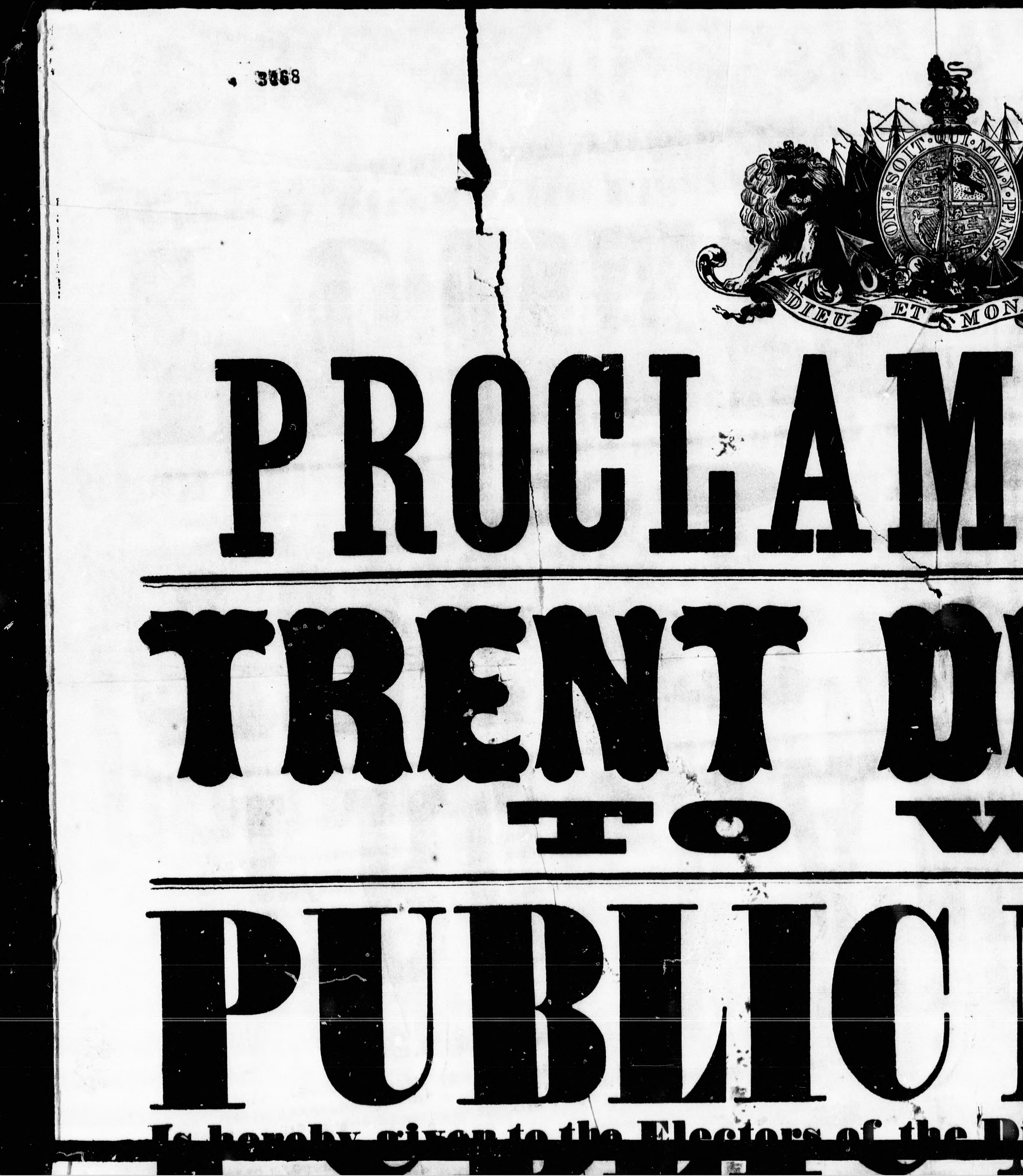 - Proclamation!! : Trent Division, to wit : public notice is hereby given to the electors of the division of Trent ... for the purpose of electing a person to represent them in the electoral division of Trent ..