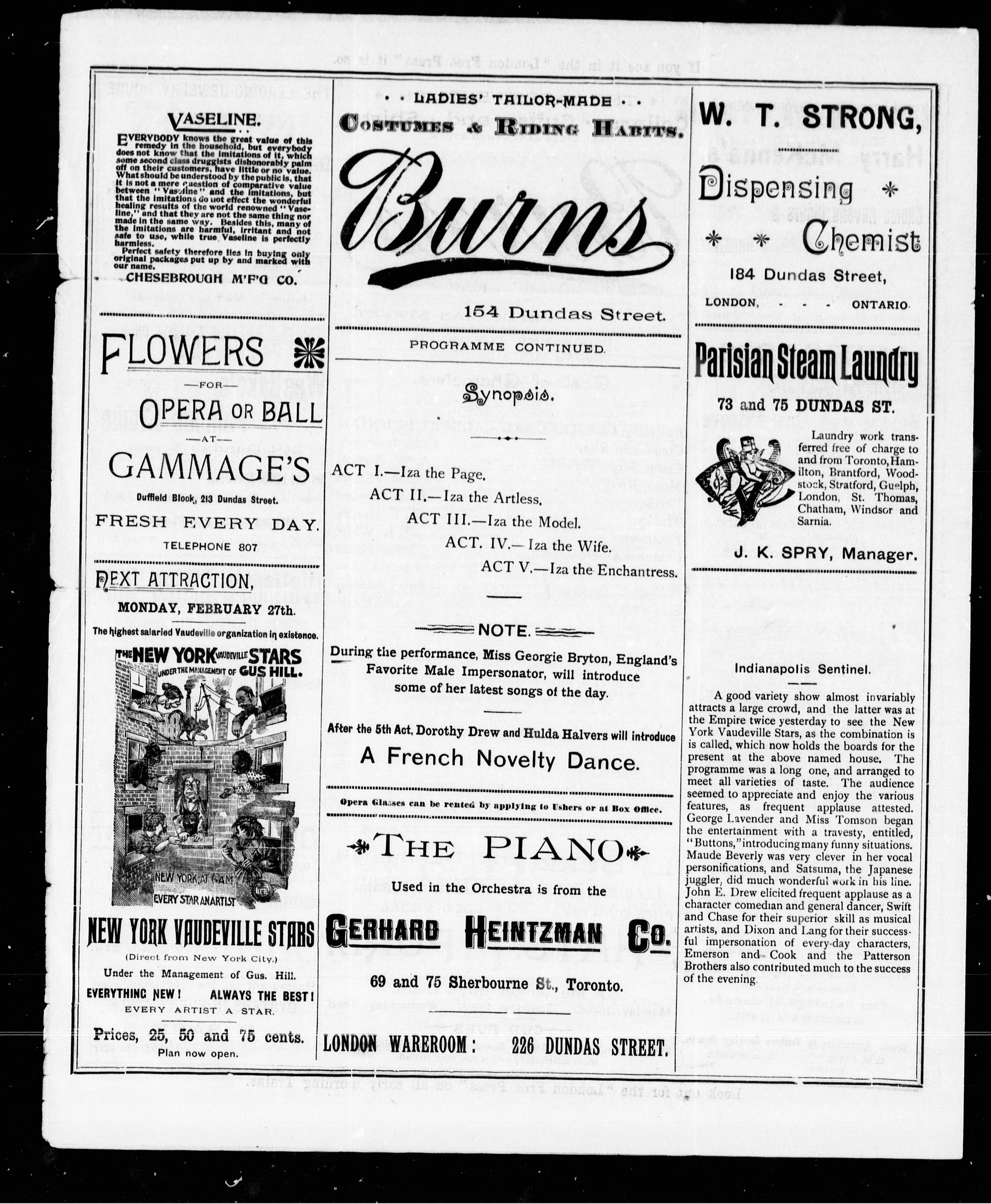 Théâtre -- Programmes -- Ontario -- London. - Document original