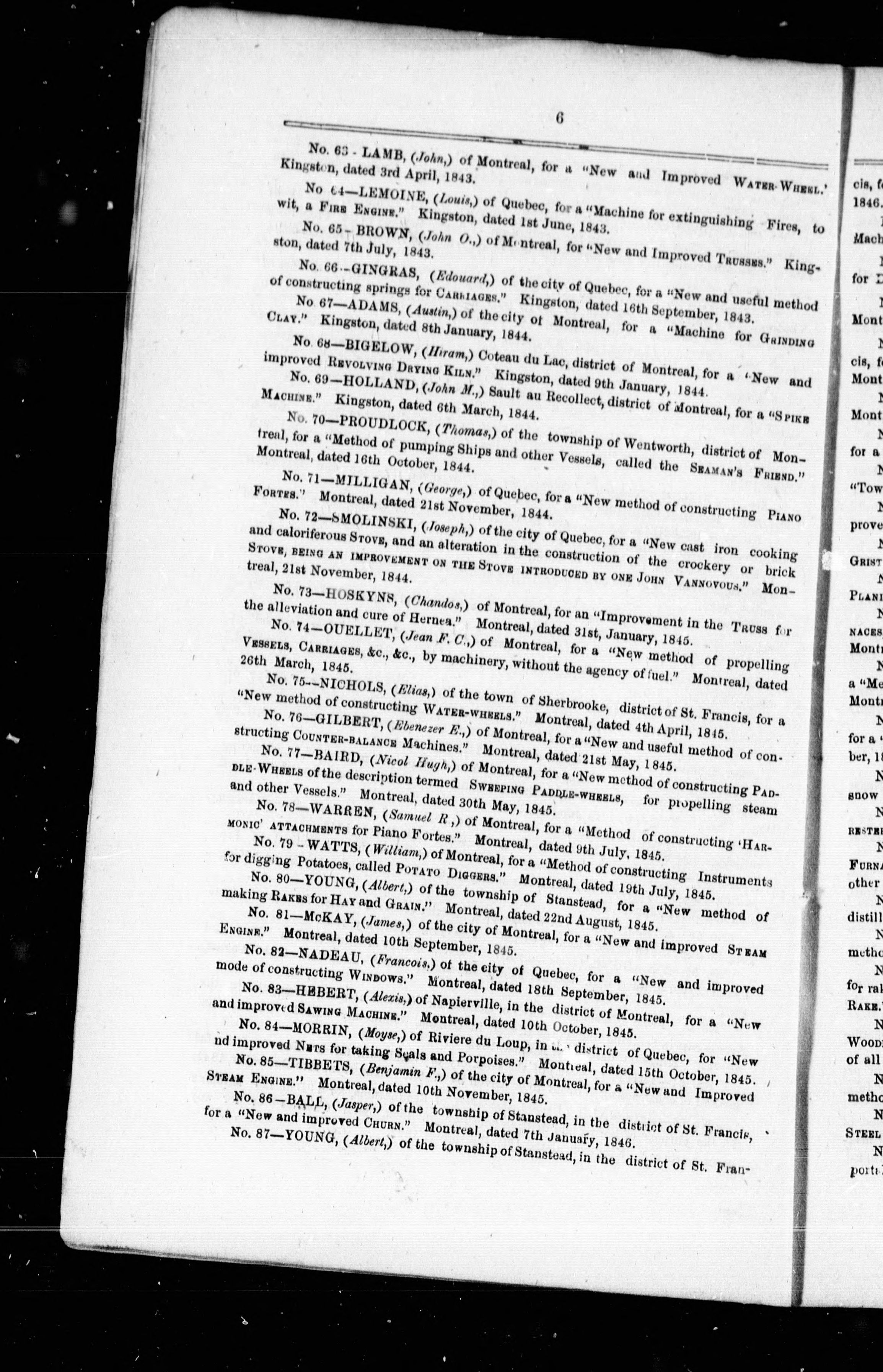 - List of Canadian patents : from the beginning of the Patent Office (June, 1824), till the 1st of January, 1869.