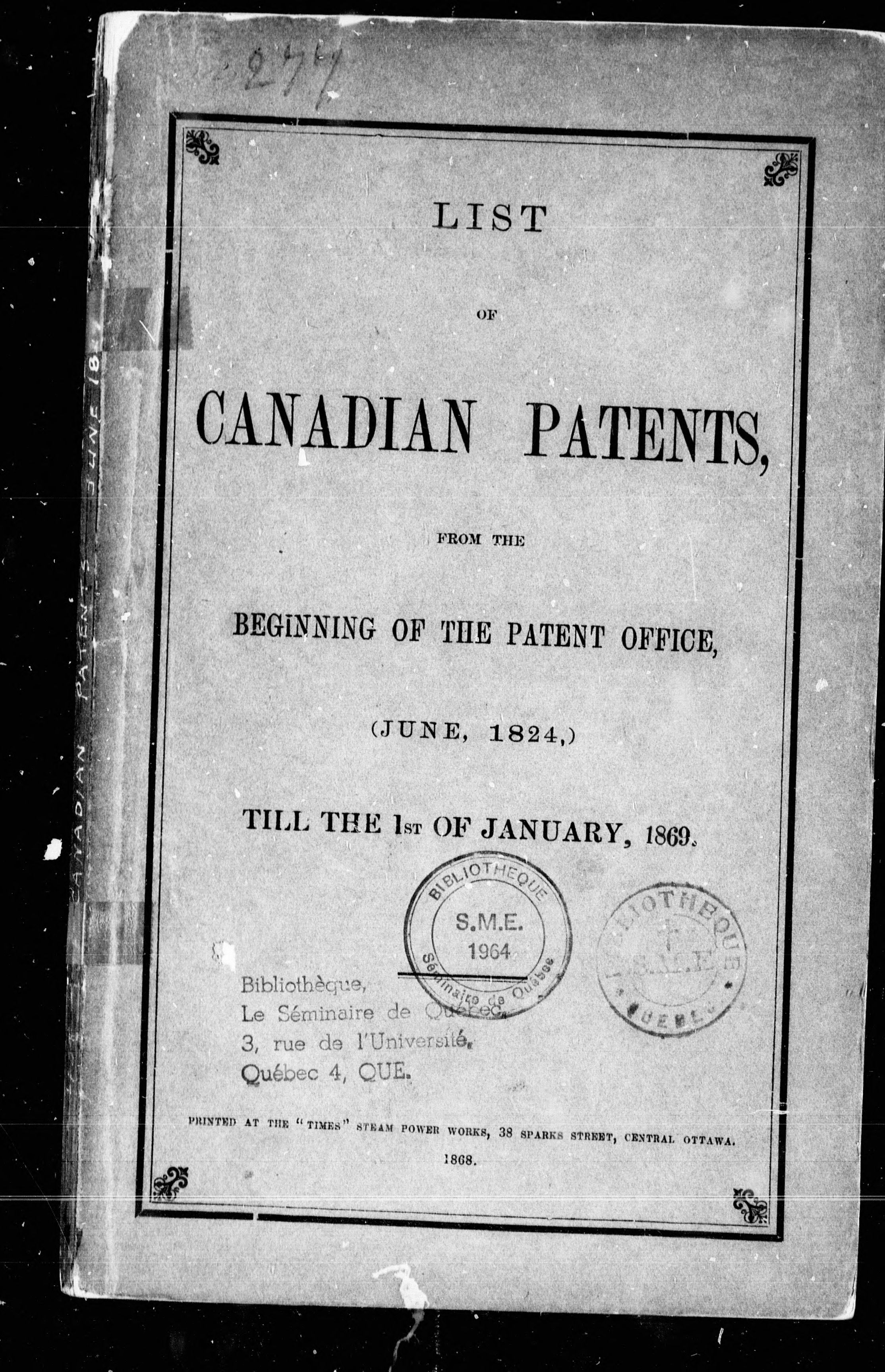 List of Canadian patents : from the beginning of the Patent Office (June, 1824), till the 1st of January, 1869.